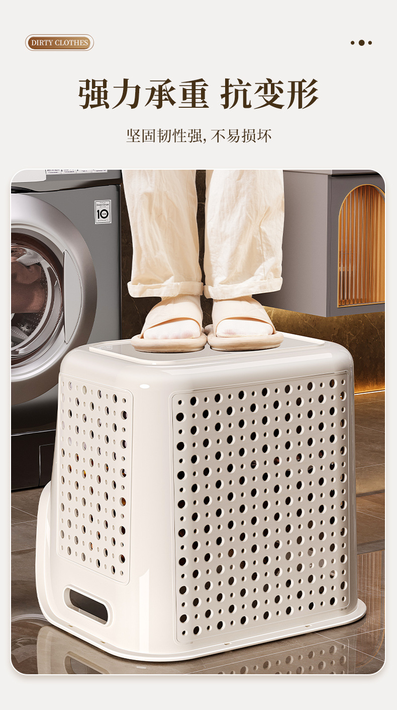 • 크림 화이트 [대형] 쌓인 더러운 빨래 바구니 (바퀴 없음)