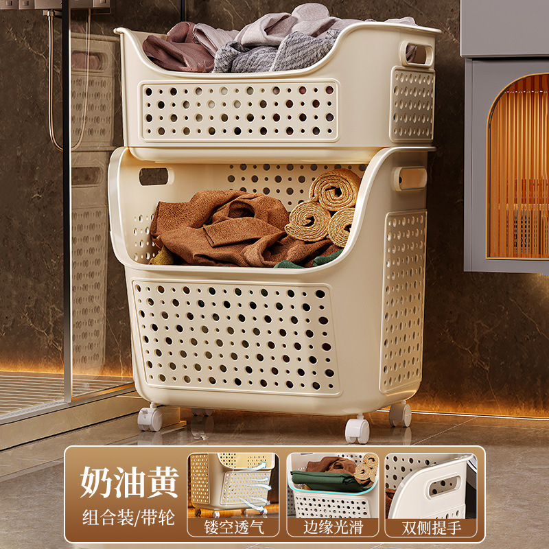 • 크림옐로우 [대+소] 쌓인 더러운 빨래바구니 (바퀴없음)