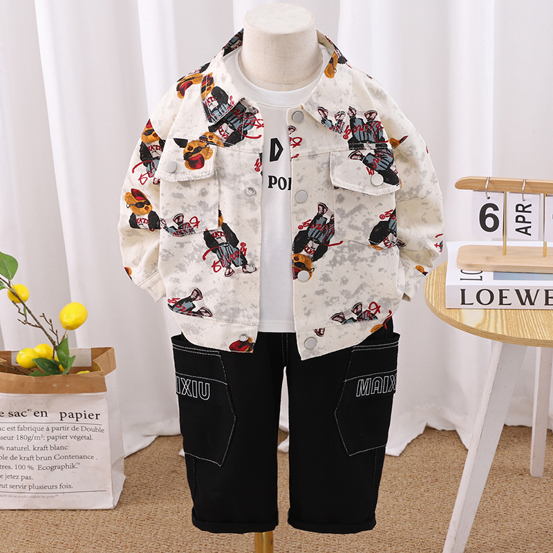 소년 가을 모자 곰 정장 서양식 새 아기 봄, 가을 아기 아동복 3 피스 세트 드롭 배송스토어 가기