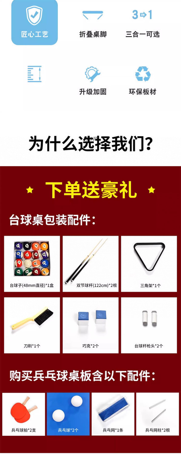 어린이 당구대 가정용 설치가 필요없는 접이식 당구대 미국식 다기능 당구 및 탁구 식탁 3-in-one스토어 가기