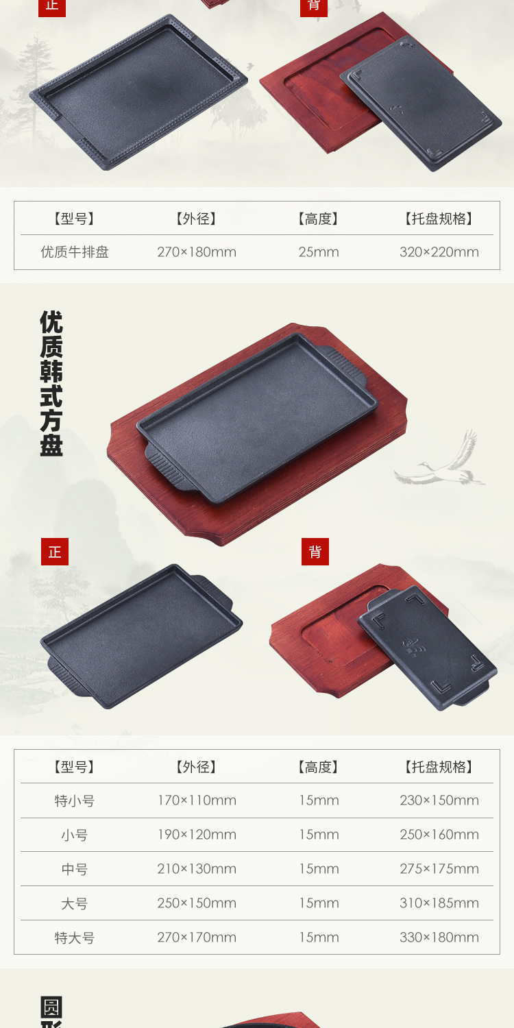 상업용 철판구이 철판 원형 바베큐 프라이팬 직사각형 한국식 스테이크 플레이트 바베큐 생선 플레이트 가정용스토어 가기