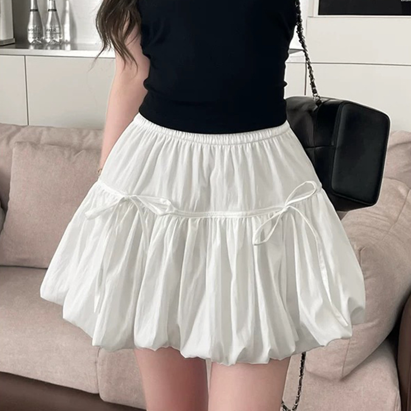여름 보우 버드 스커트 여아 2025 새로운 하이 웨이스트 슬림 스위트 화이트 A 라인 퍼프 스커트스토어 가기