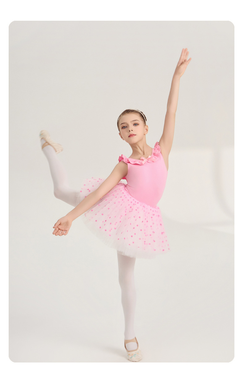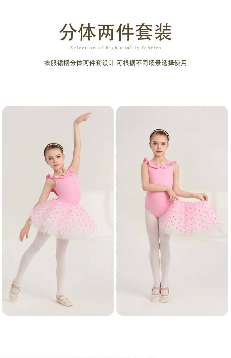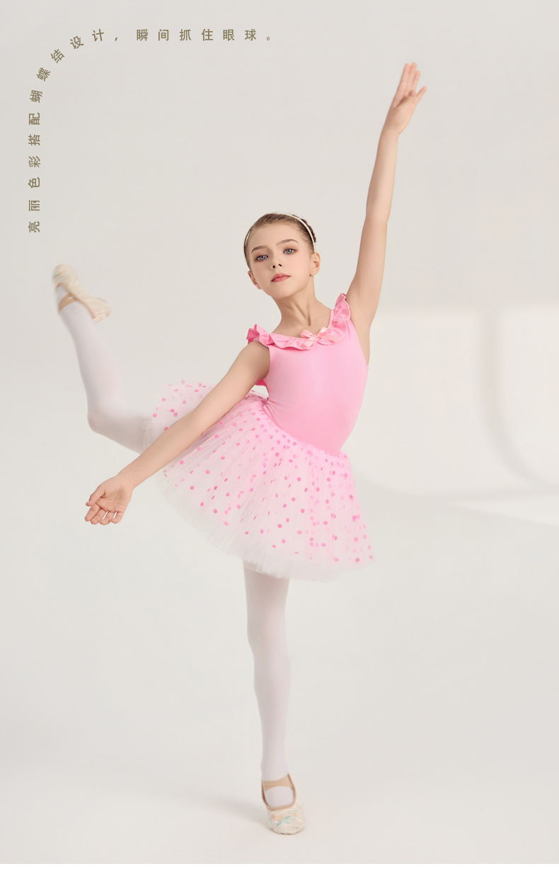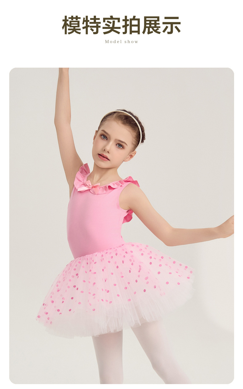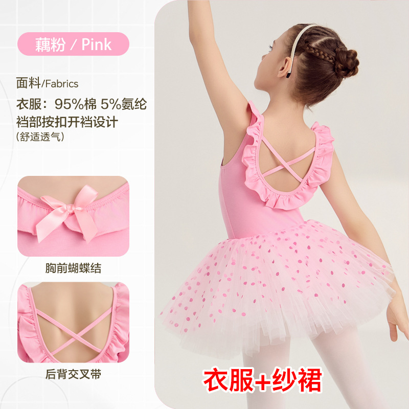 아동용 댄스 의상, 여름 민소매 여아 연습복, 순면 핑크 유아 발레 거즈 스커트, 중국 댄스 의상스토어 가기