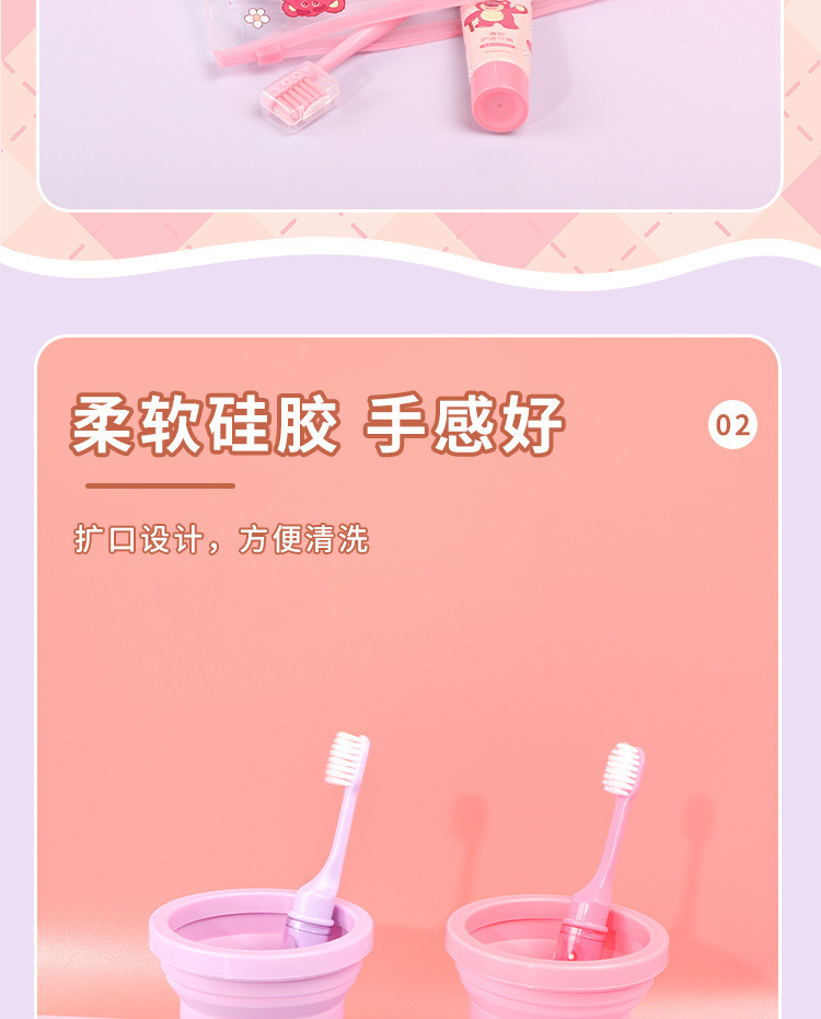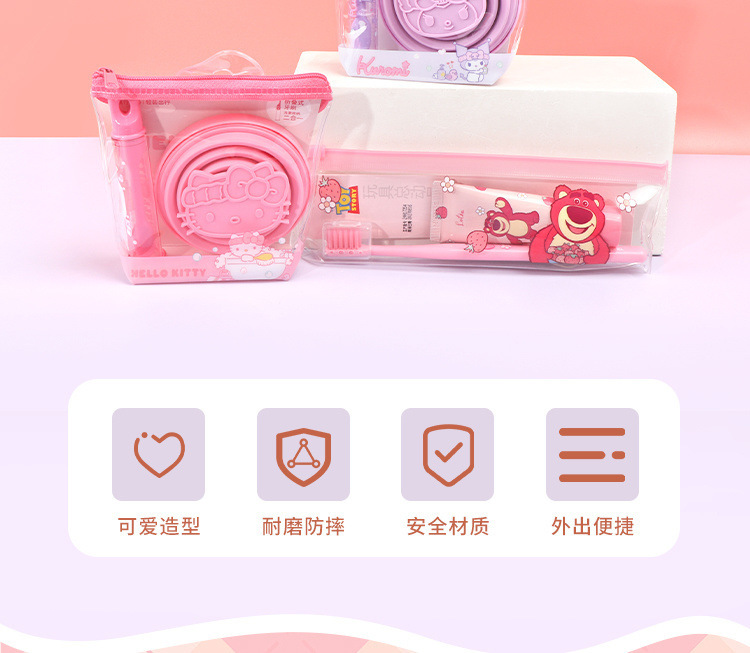 MINISO 유명 브랜드 워시 여행 세트 귀여운 딸기 곰 접이식 야외 휴대용 칫솔 컵스토어 가기