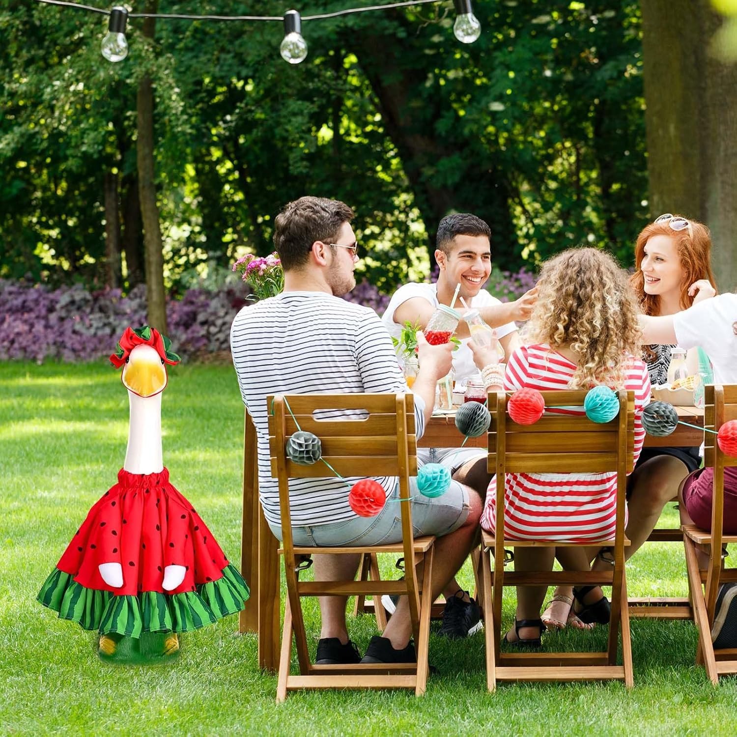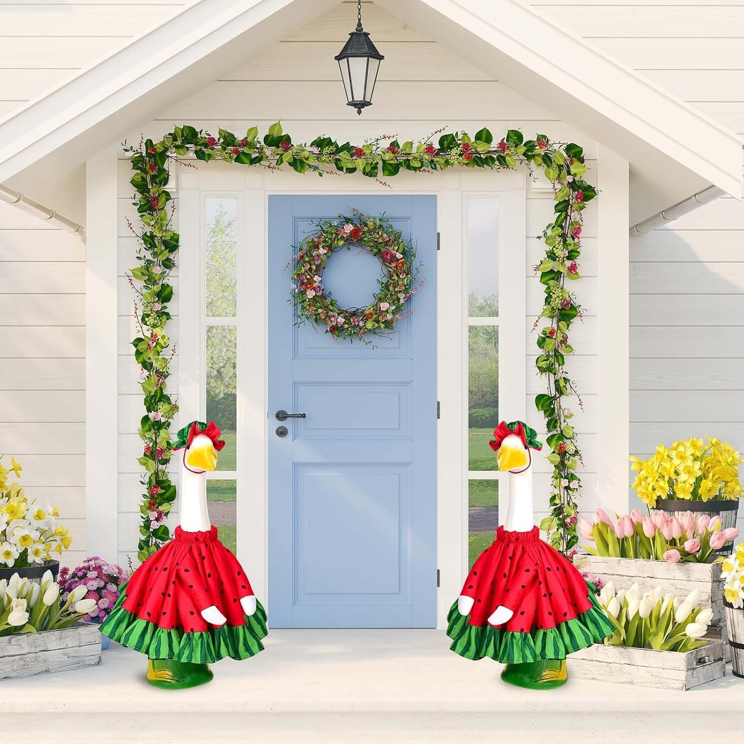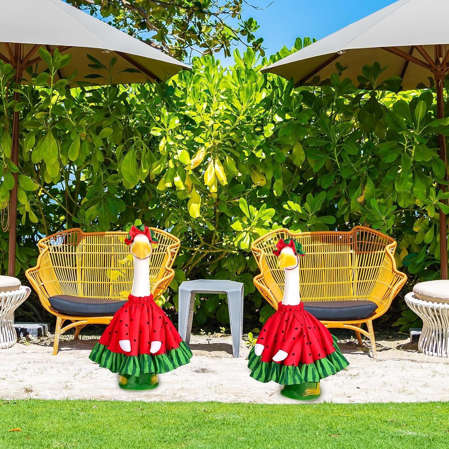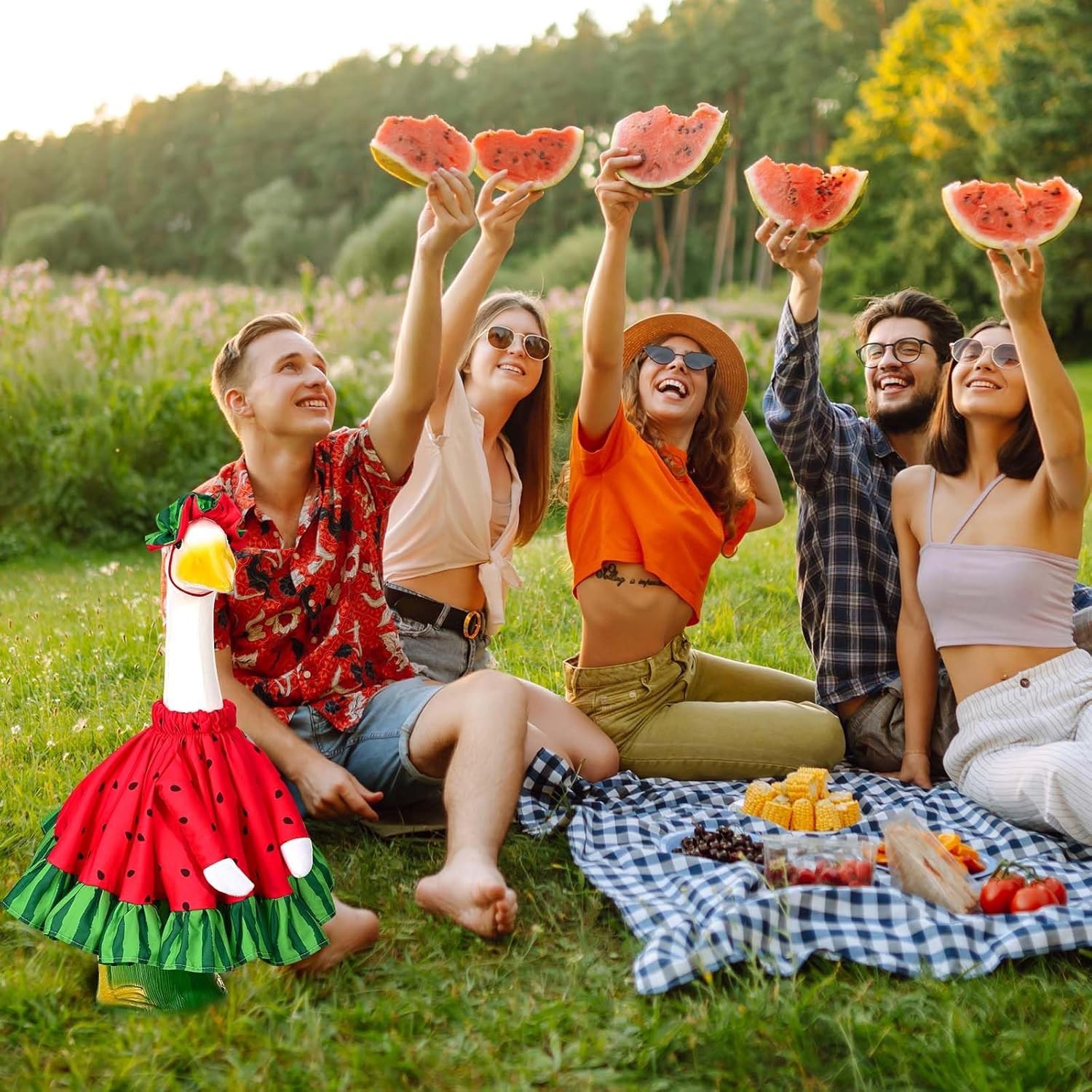 수박 베란다 거위 의상 수박 패턴 거위 의상 야외 정원 마당 파티오 잔디 거위 동상