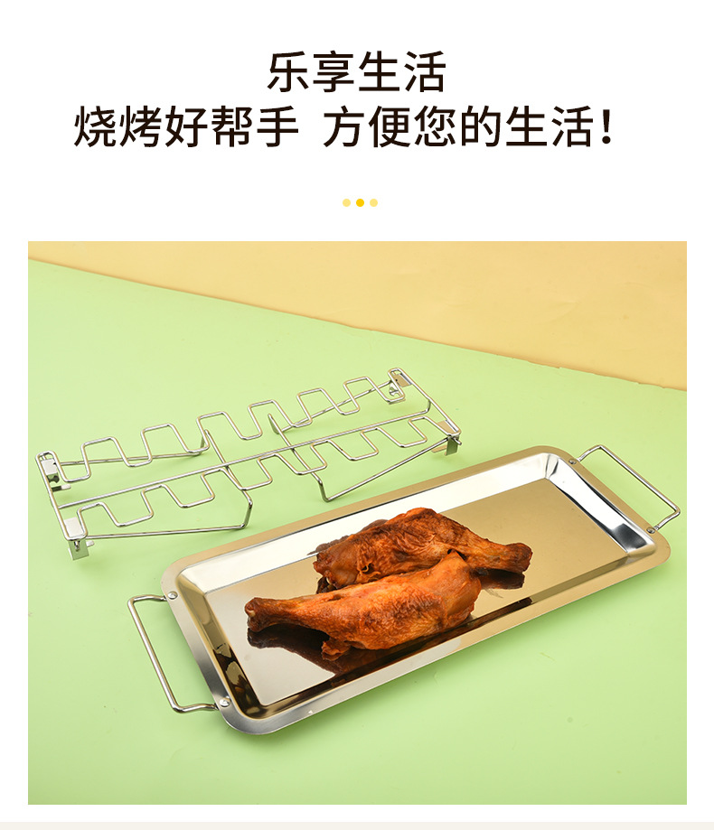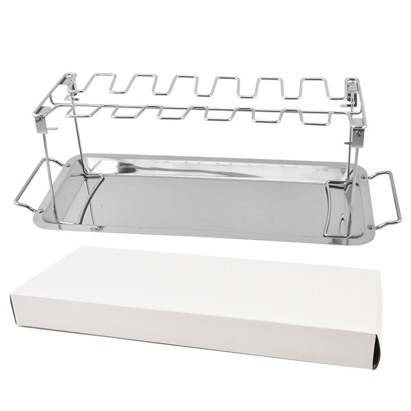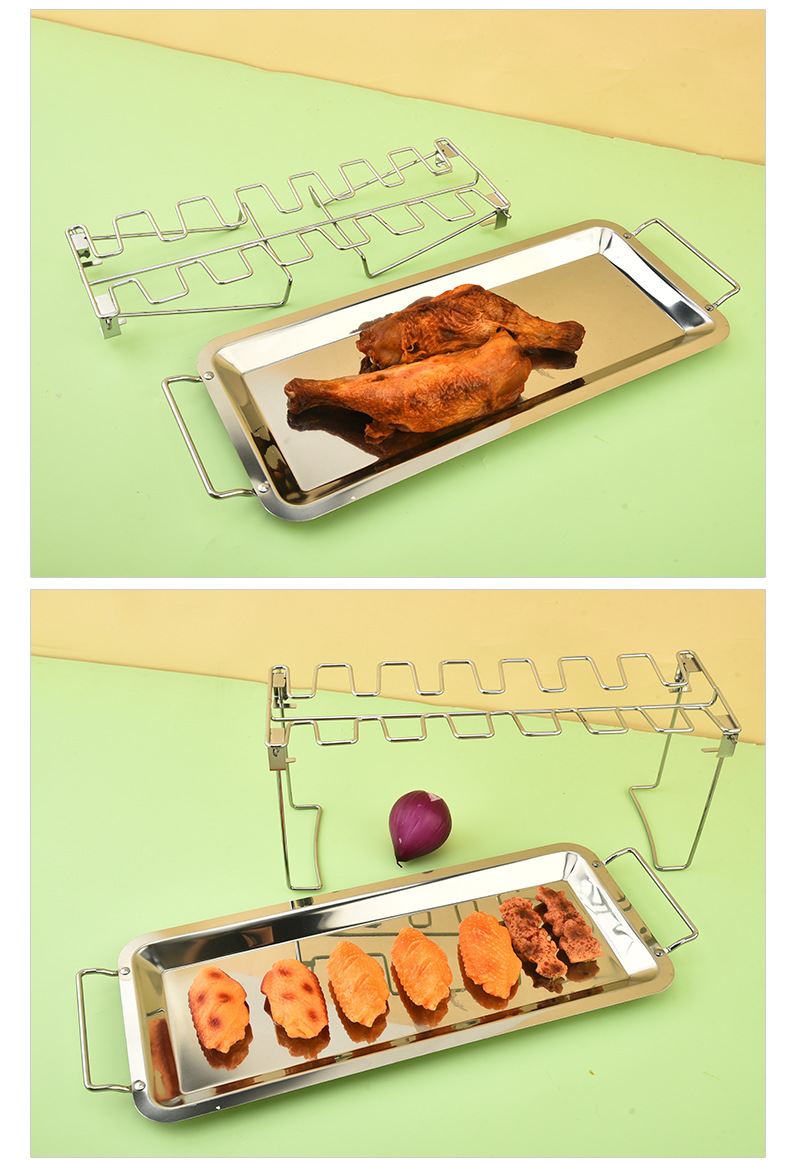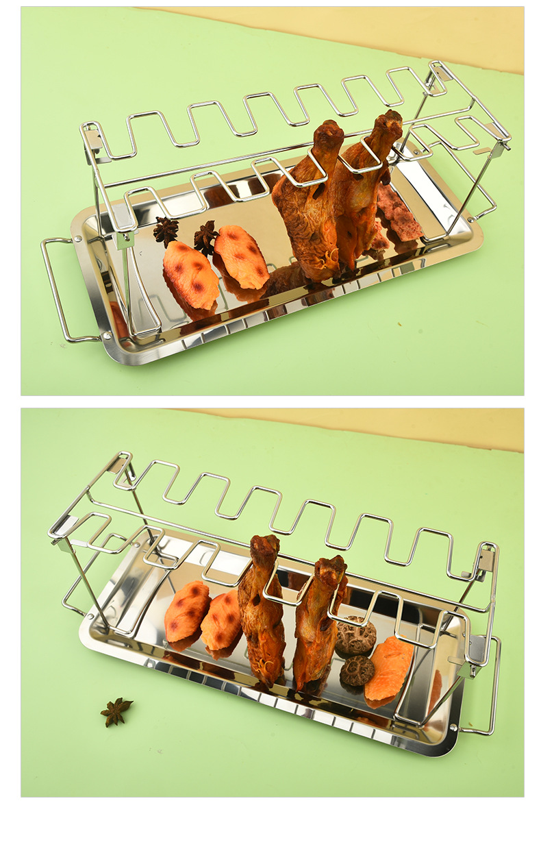 스테인레스 스틸 닭 다리 그릴 가정용 접이식 닭 다리 그릴 야외 바베큐 그릴 바닥 트레이가있는 바베큐 닭고기 그릴