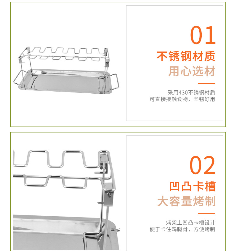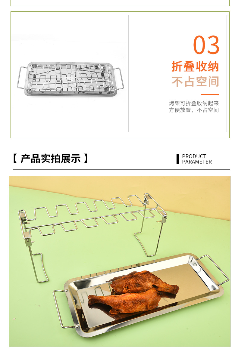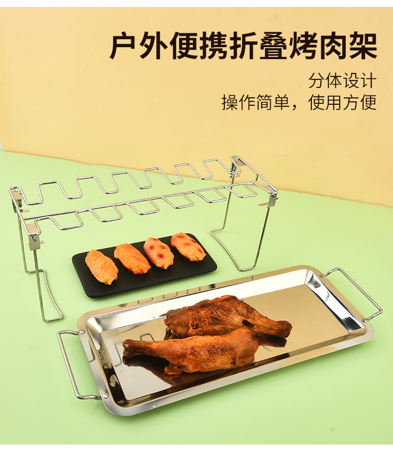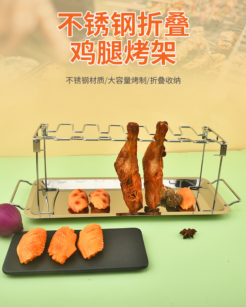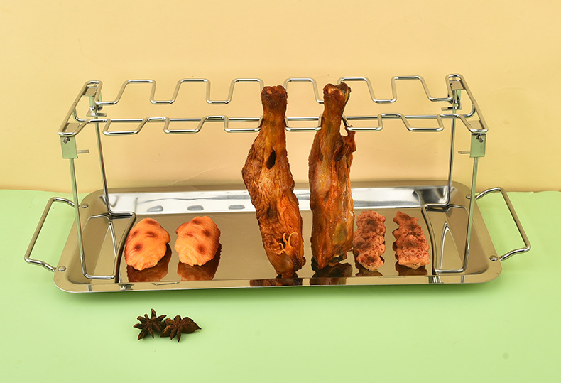 스테인레스 스틸 닭 다리 그릴 가정용 접이식 닭 다리 그릴 야외 바베큐 그릴 바닥 트레이가있는 바베큐 닭고기 그릴