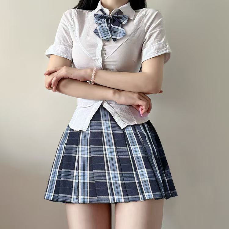 • 흰색 셔츠 + 나비넥타이 + 호시노 체크 스커트 (3종세트)