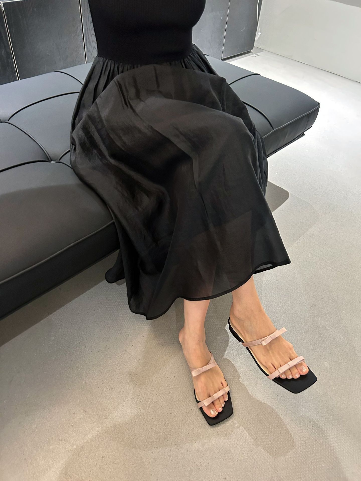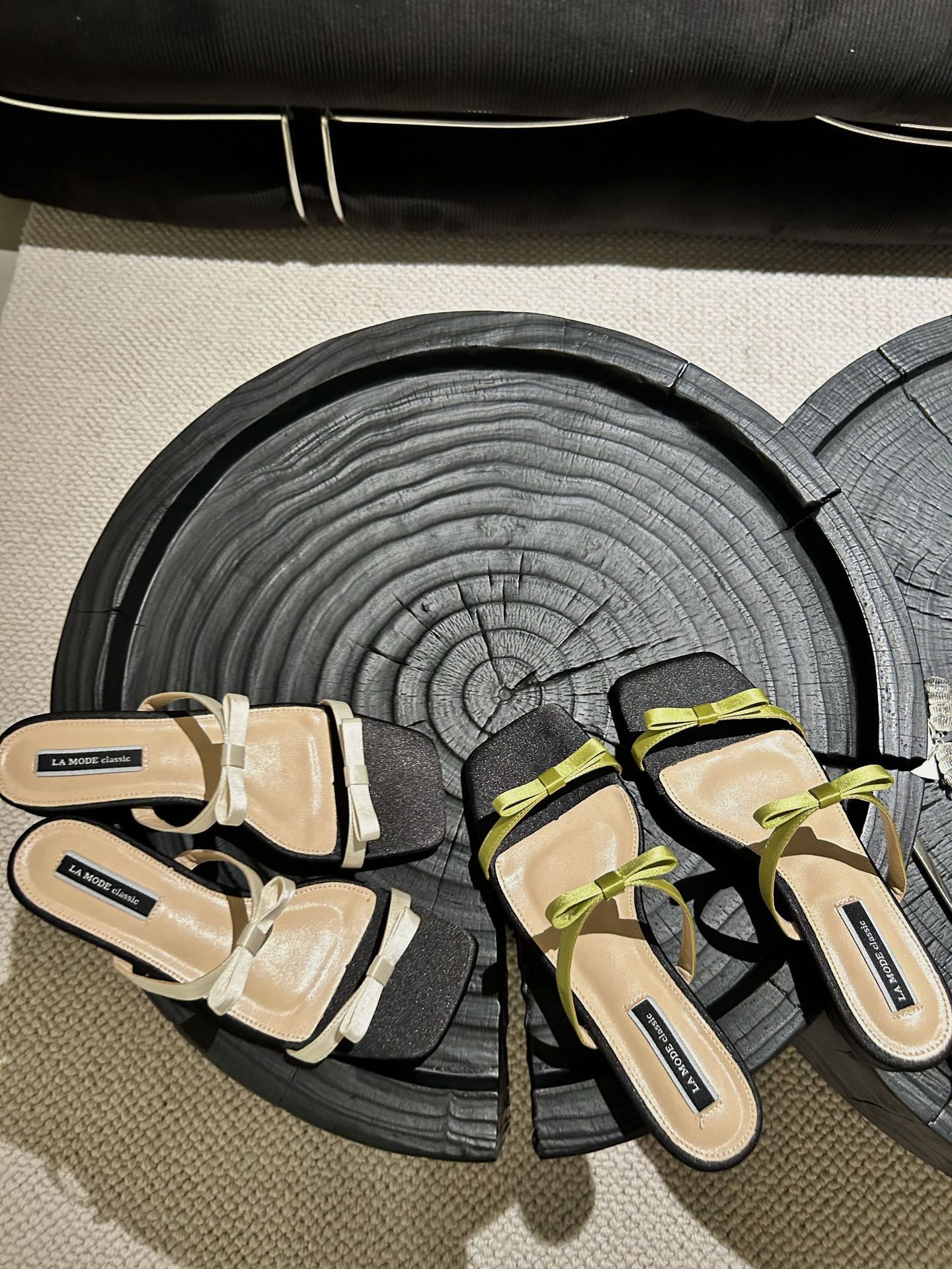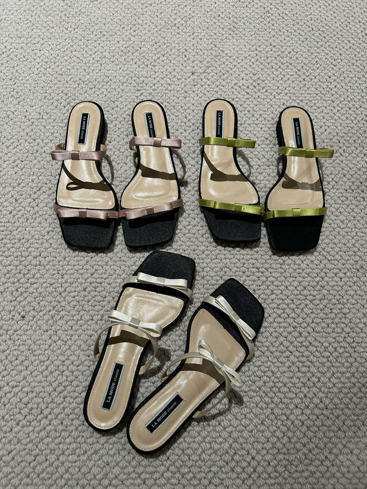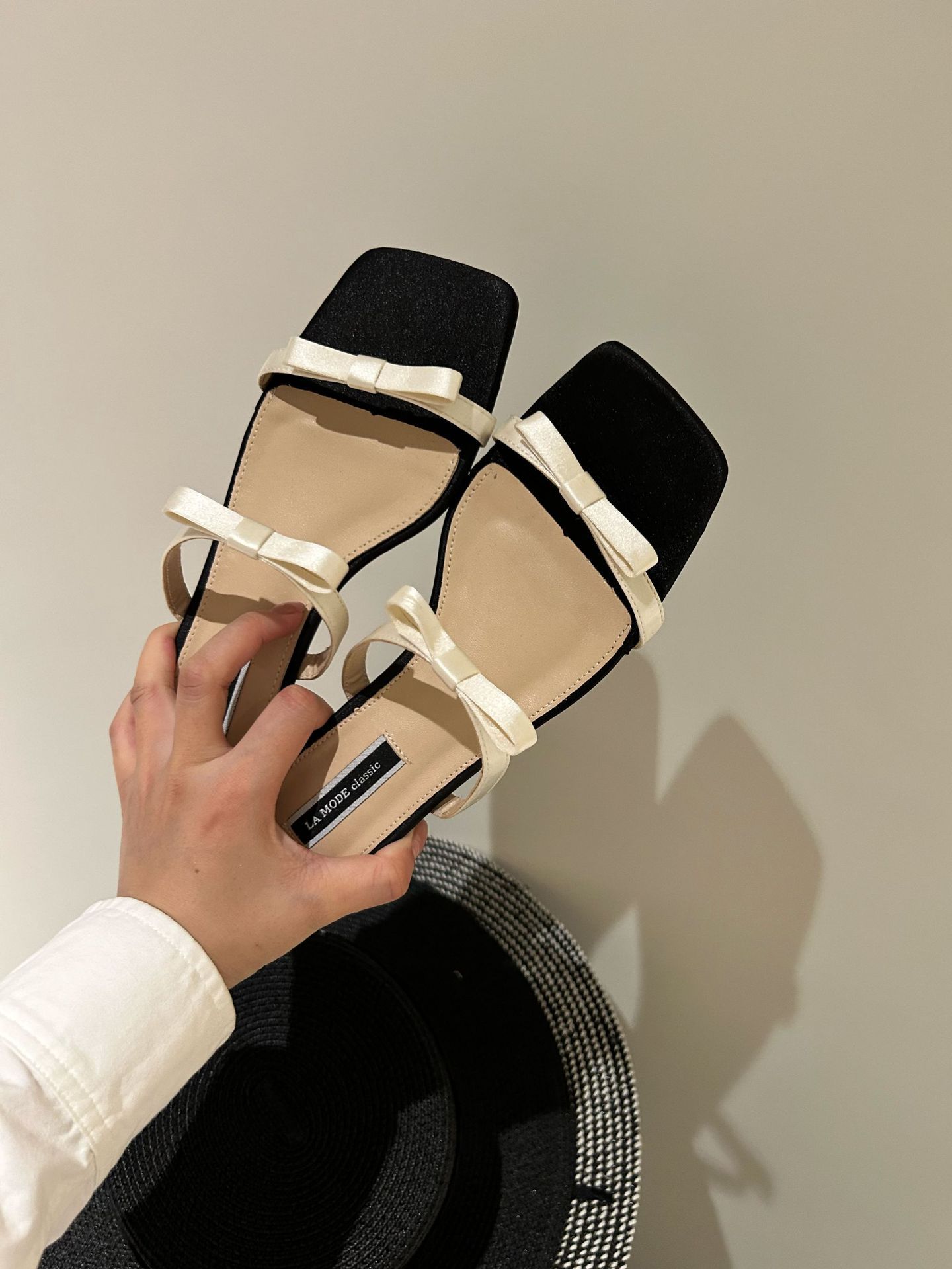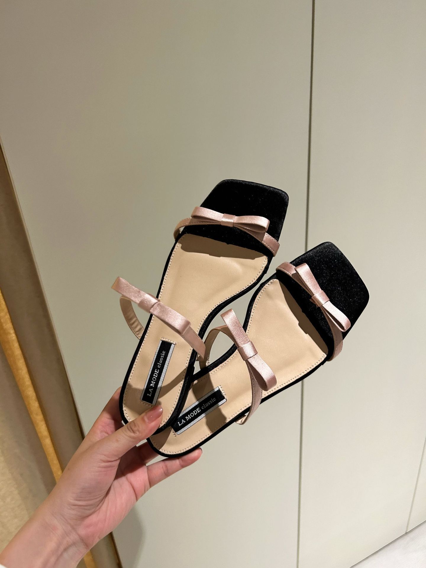 Lamode Classic2023 한국 신작 보우 스트랩 샌들 플랫 스퀘어 토 여성 샌들스토어 가기