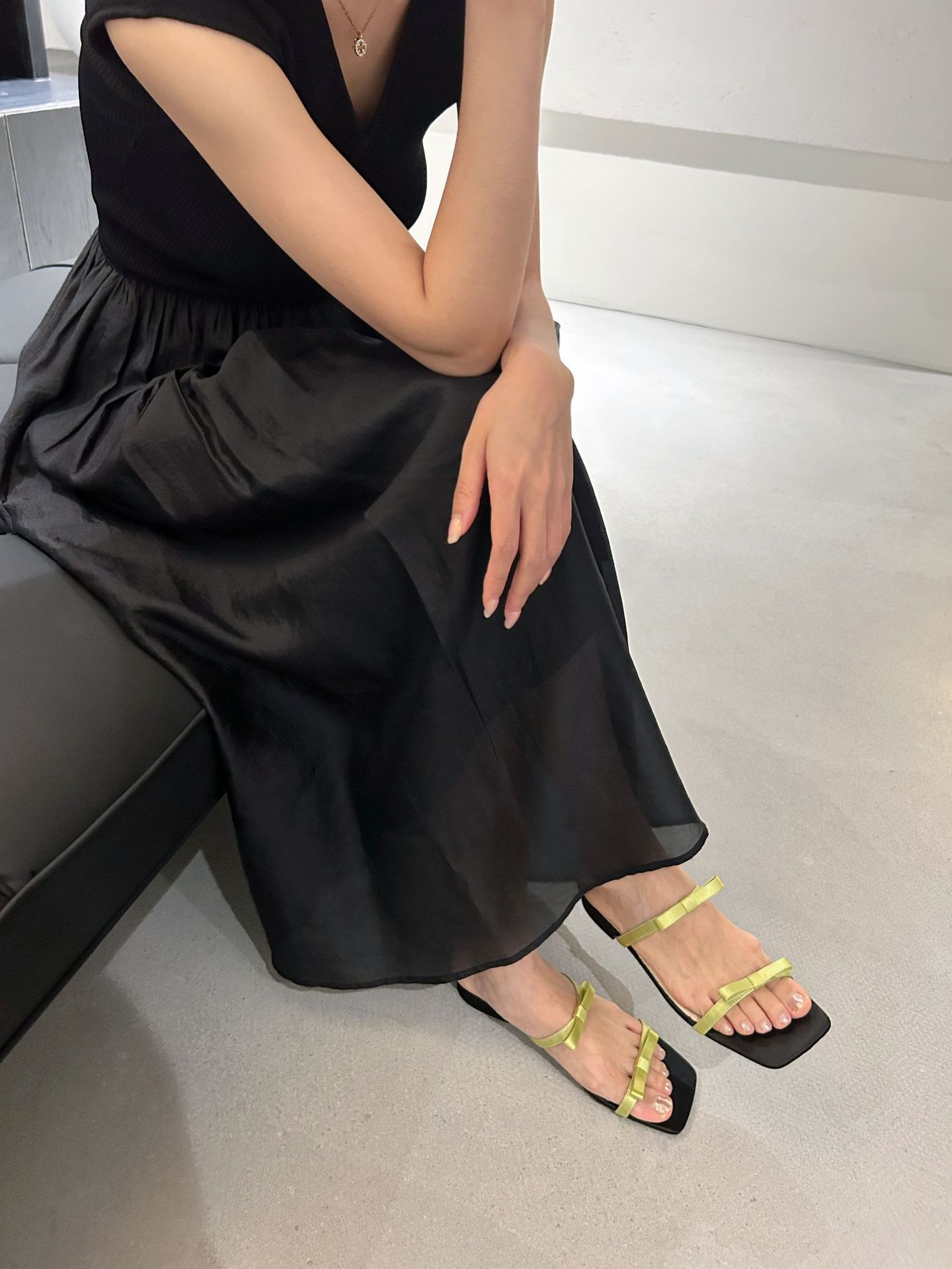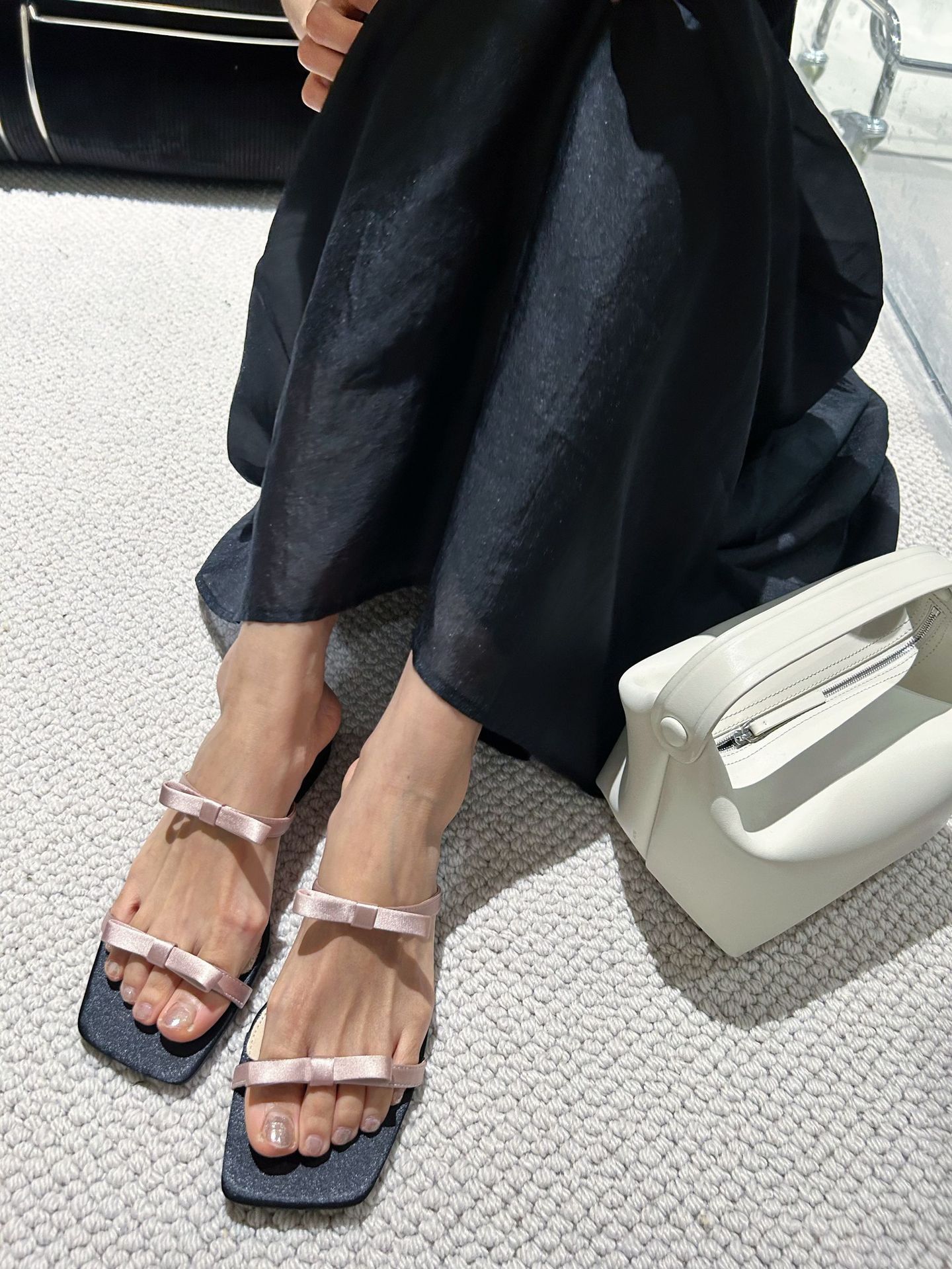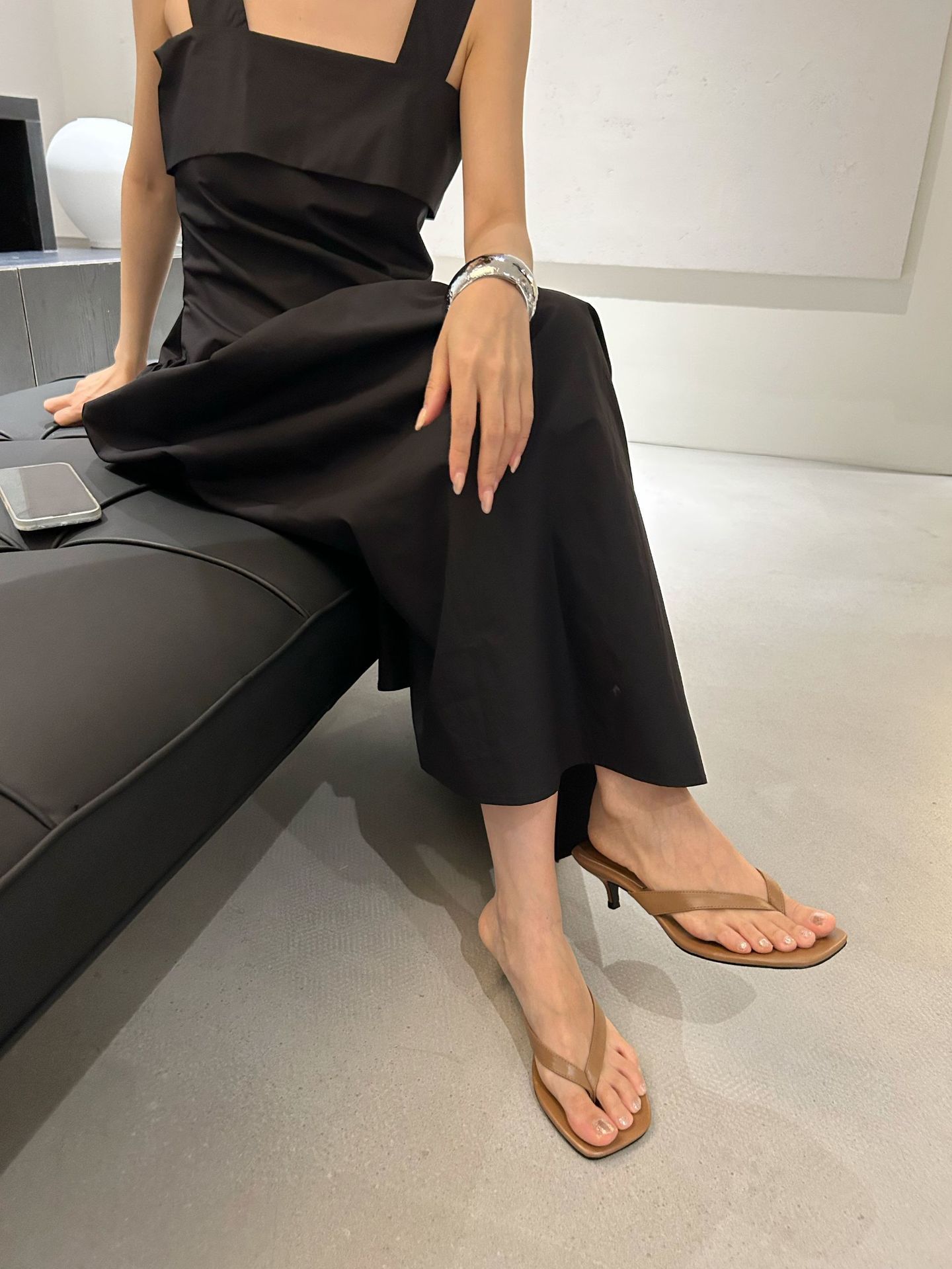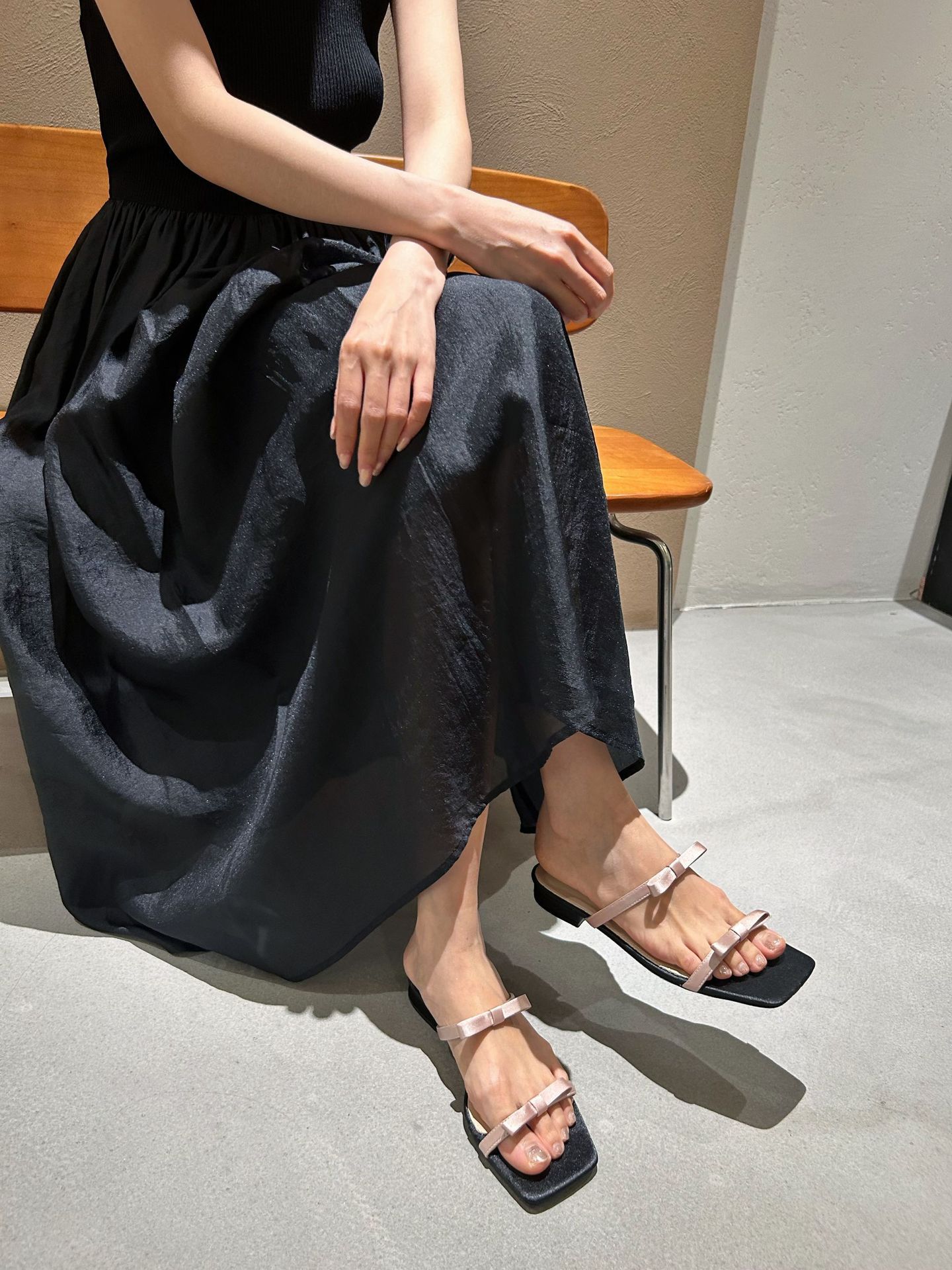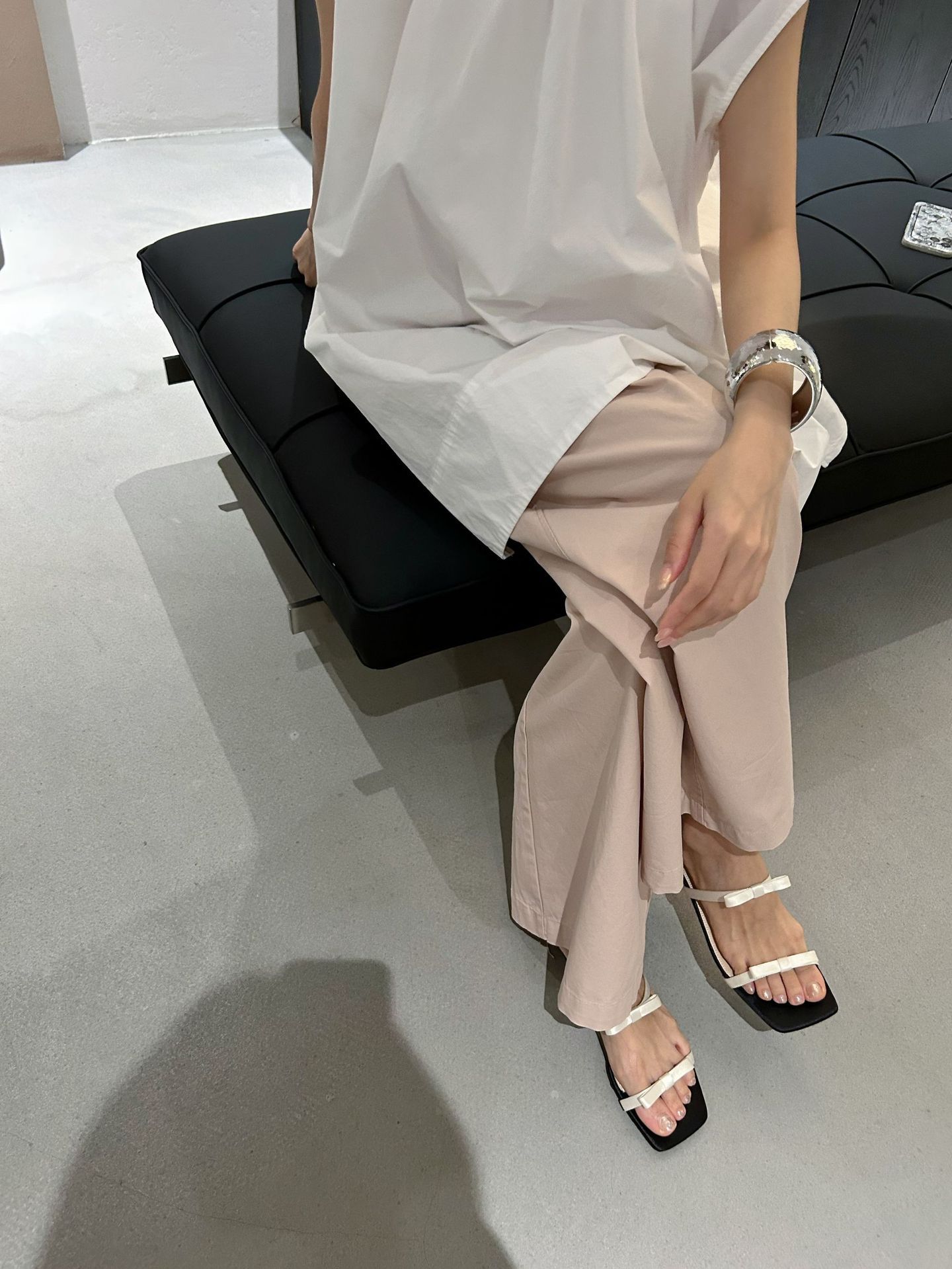 Lamode Classic2023 한국 신작 보우 스트랩 샌들 플랫 스퀘어 토 여성 샌들스토어 가기