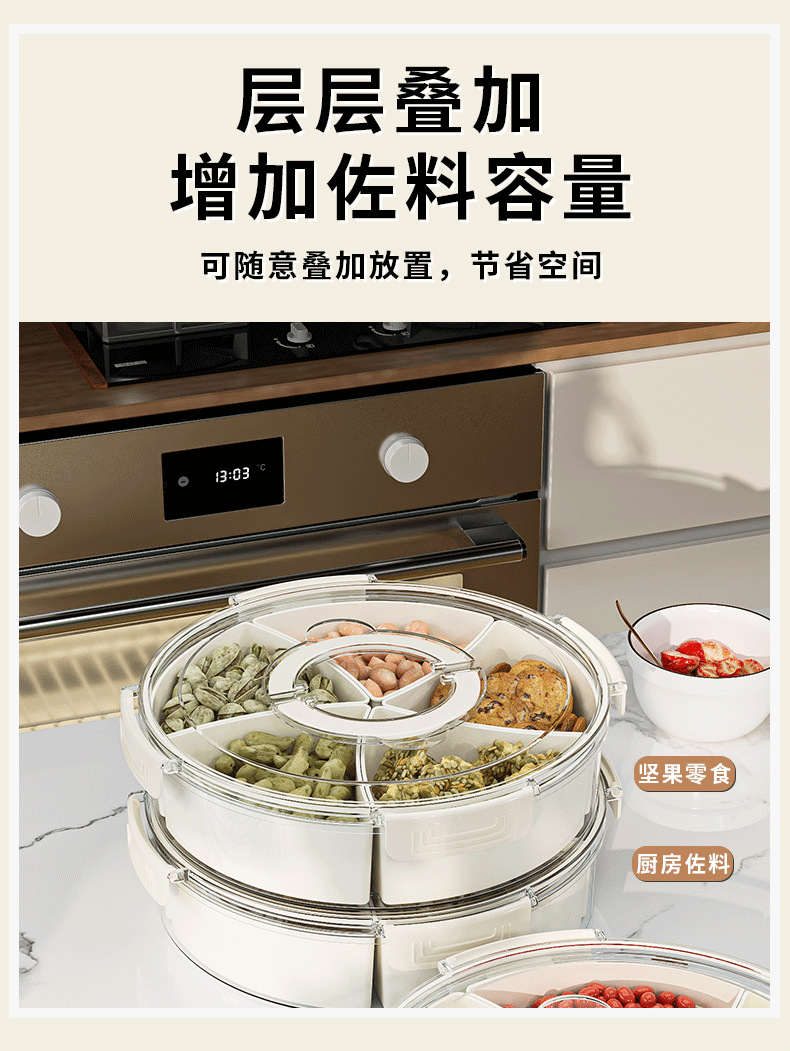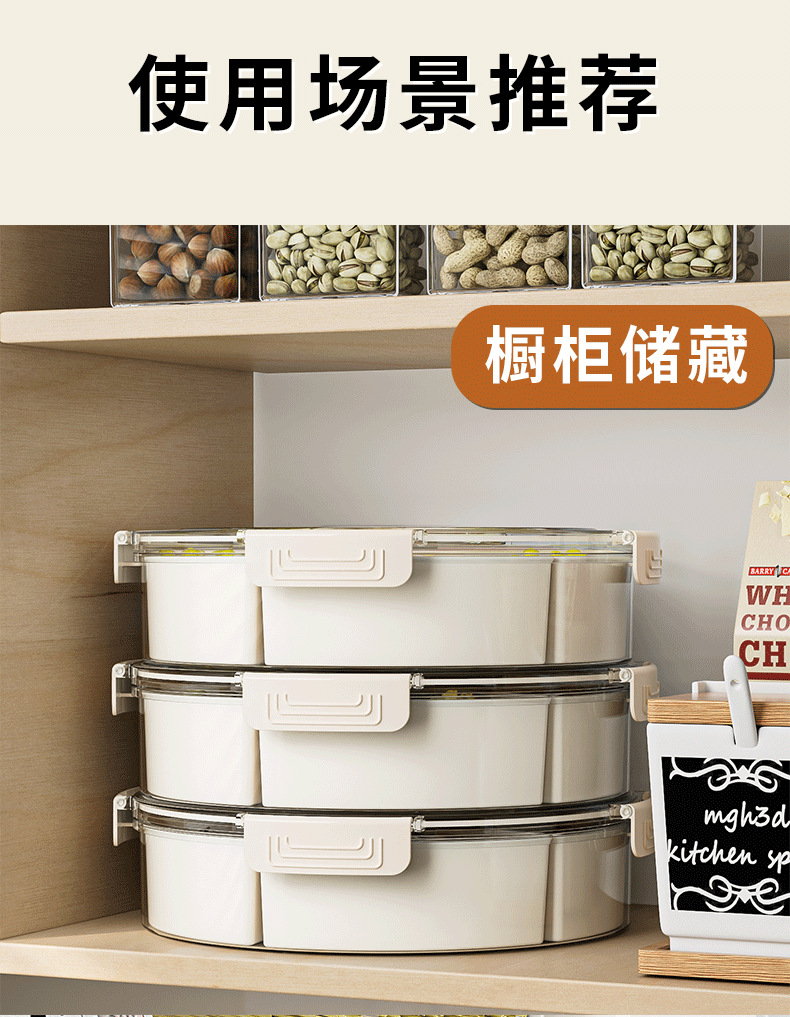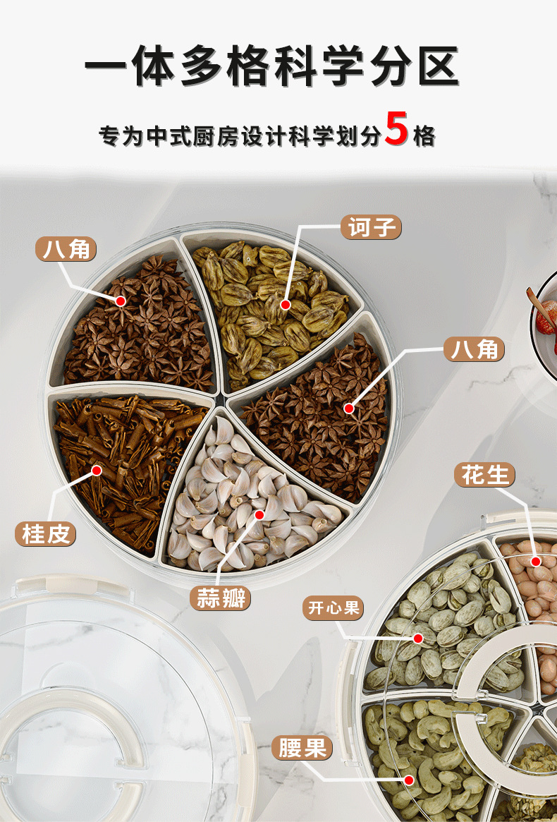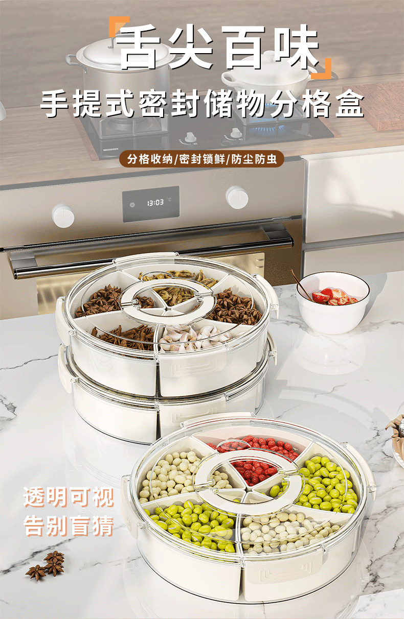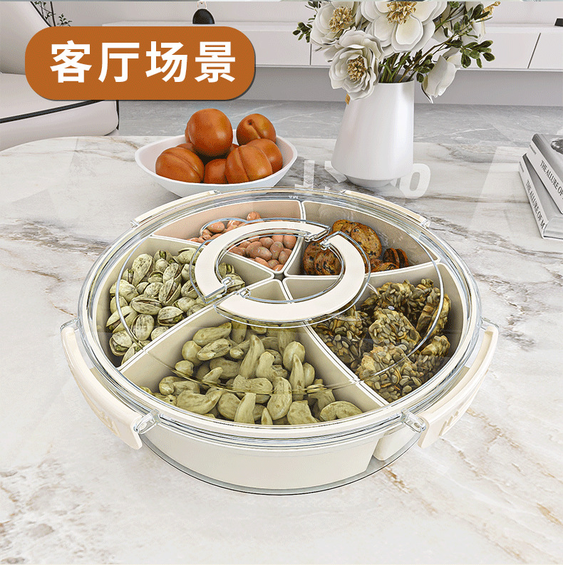 손잡이가 있는 주방 가정용 과일 접시, 5칸 밀봉 방습 건조 과일 접시, 뚜껑이 있는 원형 스낵 보관 상자스토어 가기