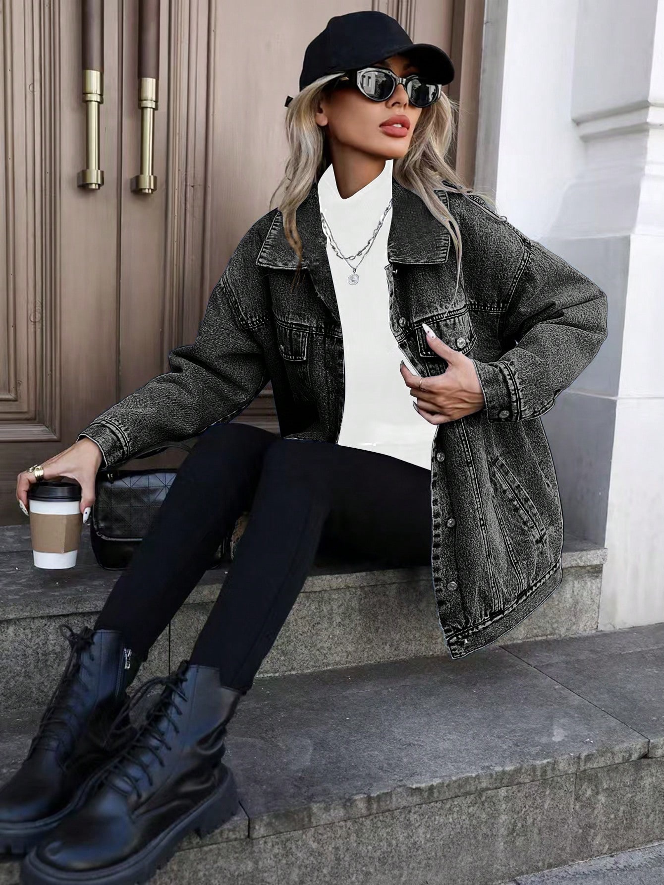 재고-20808 # 크로스보더 유럽 및 미국 아마존 루즈핏 재킷 패션 인기 여성 재킷 데님 재킷스토어 가기