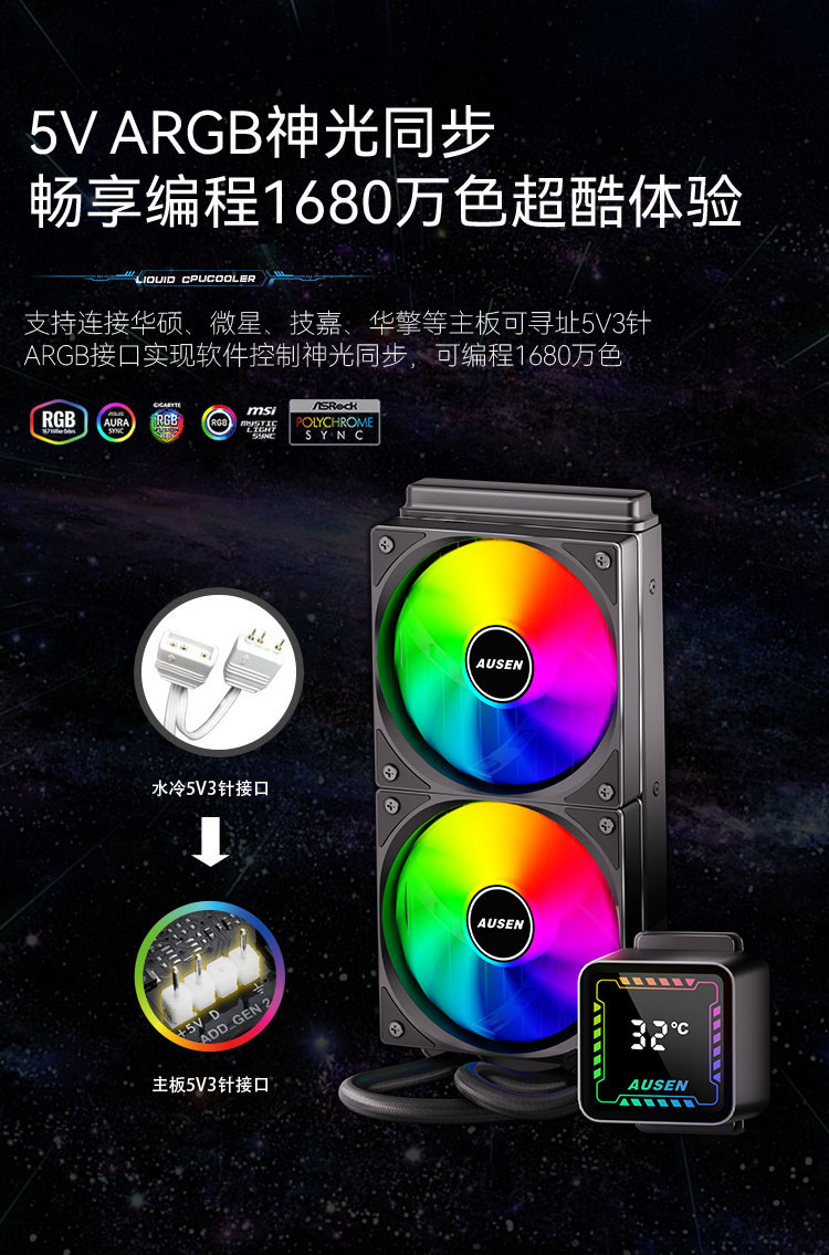 국경 간 맞춤형 360 일체형 수냉식 CPU 라디에이터 온도 디지털 디스플레이 콜드 헤드 호스트 컴퓨터 냉각 ARGB