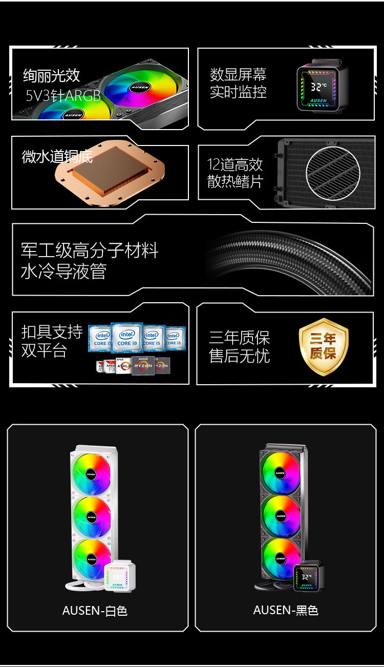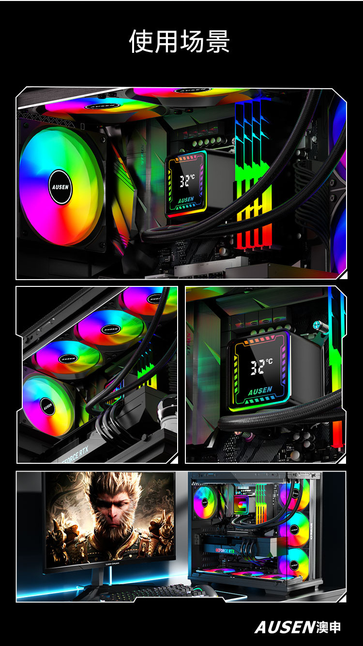 국경 간 맞춤형 360 일체형 수냉식 CPU 라디에이터 온도 디지털 디스플레이 콜드 헤드 호스트 컴퓨터 냉각 ARGB스토어 가기