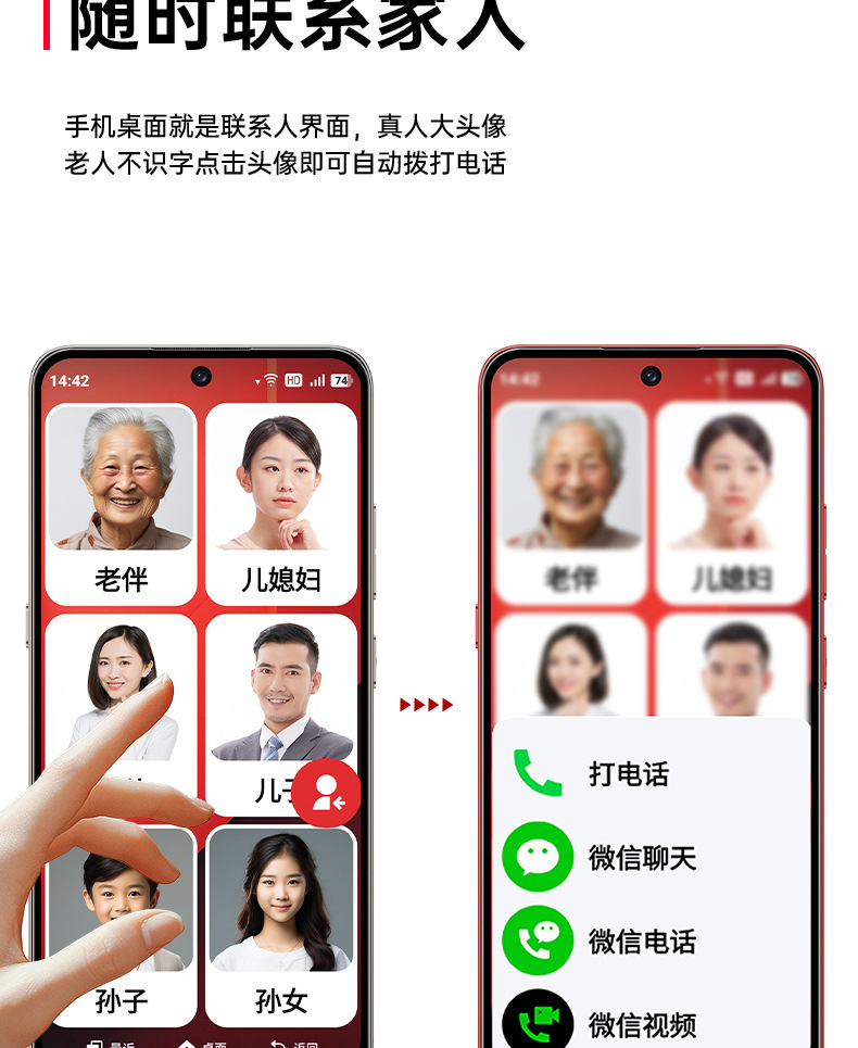 다기능 원터치 위챗 영상통화 스마트 노인폰, 전화 자동응답, 원격지원, 노인용 휴대폰 공장스토어 가기