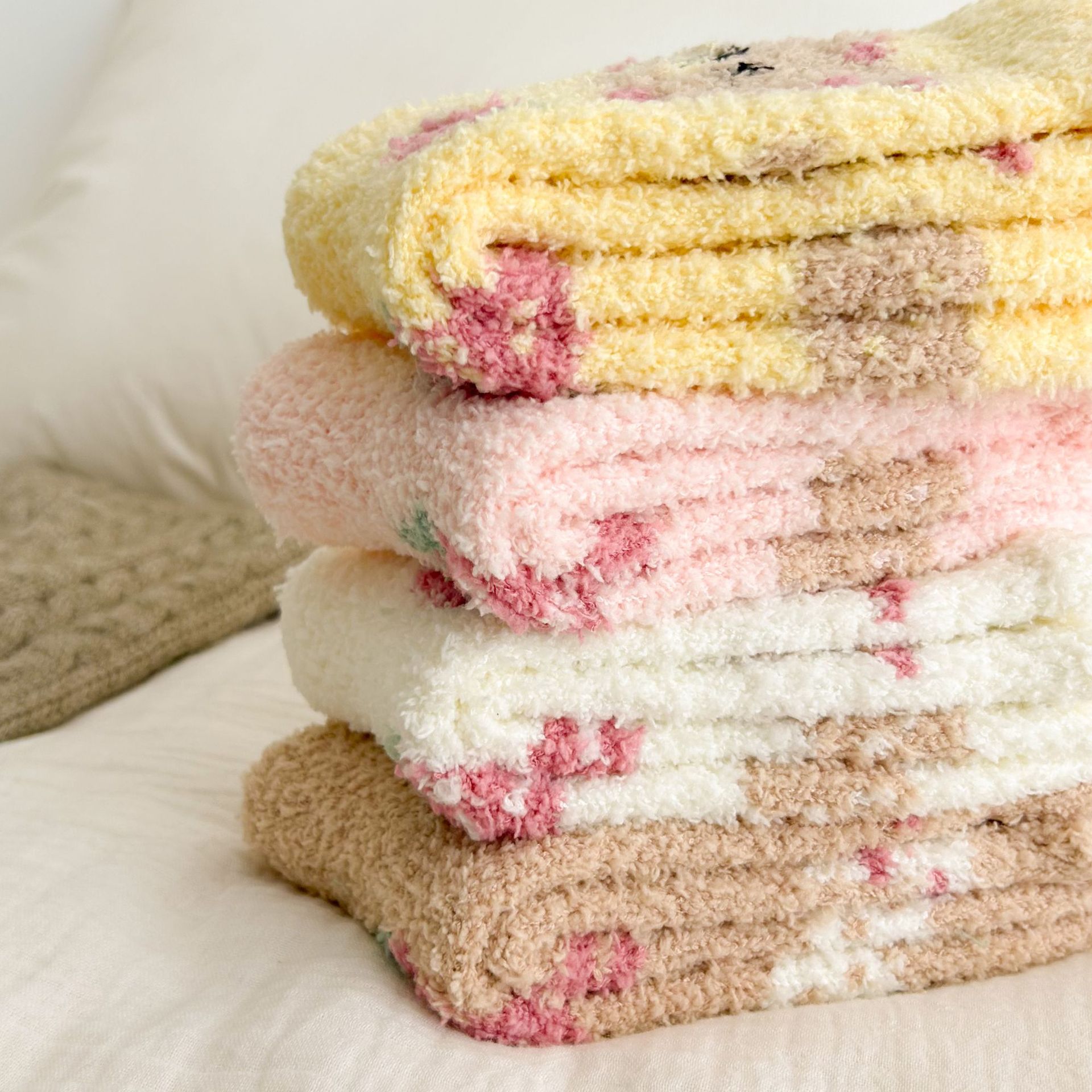가을 겨울 새로운 산호 벨벳 여성 양말 홈 플로어 양말 달콤하고 귀여운 곰 양말 여성 수면 양말 중간 튜브 만화 양말스토어 가기