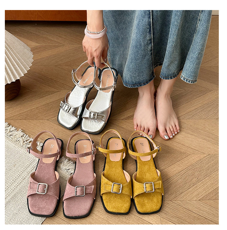 오픈 토 샌들 여성 프렌치 스트랩 2025 여름 신작 스커트 두꺼운 밑창 패션 로마 비치 슈즈