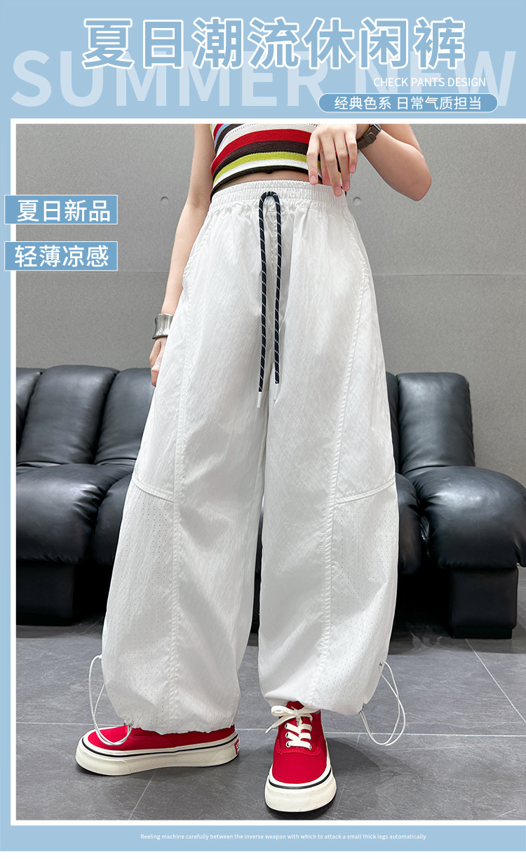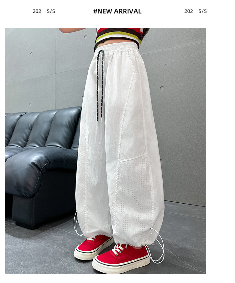 여아 모기 방지 바지 2025 여름 새로운 스타일 큰 어린이 유행 속건 메쉬 스포츠 바지 어린이 캐주얼 바지