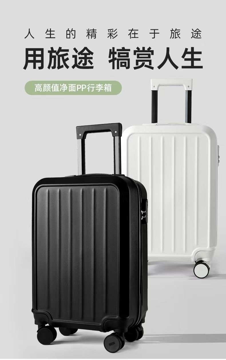 새로운 20inch 모델, 로고 인쇄 가능, 회전식 바퀴, 비밀번호 잠금장치, 고급스러운 단색 트롤리 여행가방, 도매스토어 가기