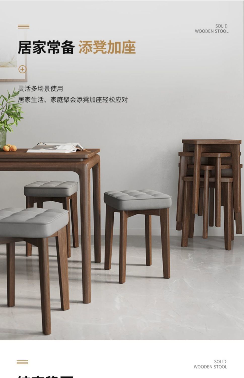 단단한 나무 부드러운 좌석 의자 현대 간단한 가정용 식탁 의자 거실 작은 벤치 쌓을 수있는 간단한 커피 테이블 사각형 의자스토어 가기