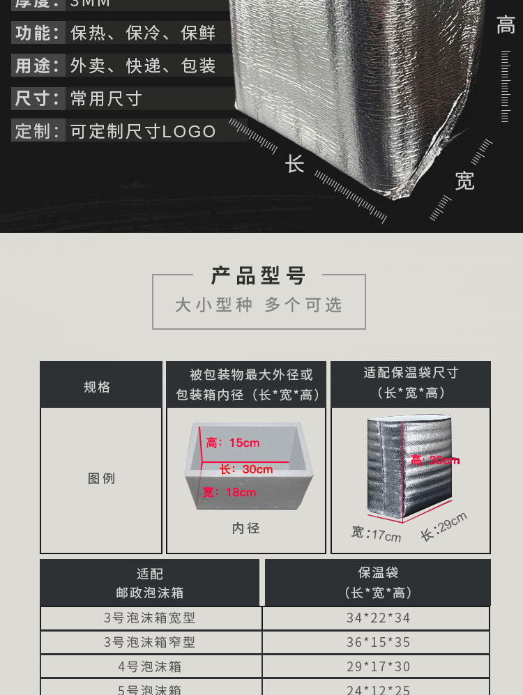 알루미늄 호일 대형 입체 단열 가방 일회용 두꺼운 특급 해산물 과일 케이크 냉장 식품 보냉 가방