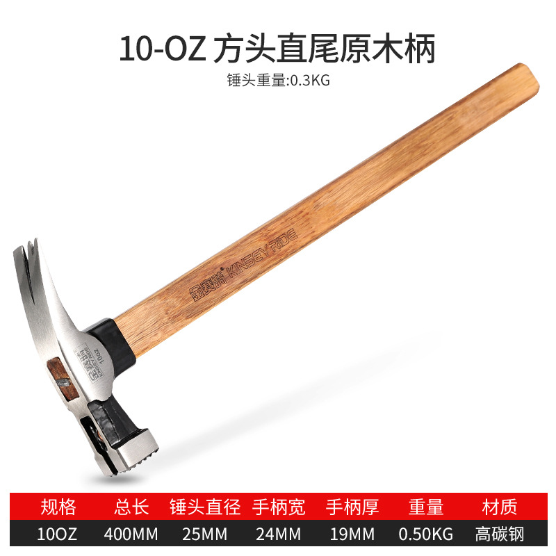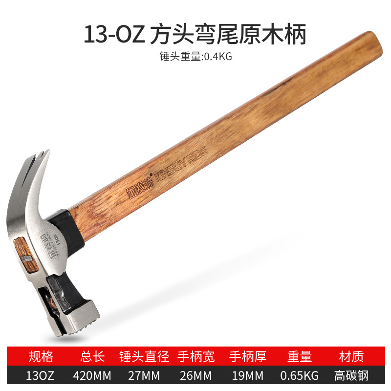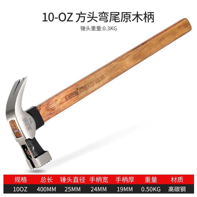 • 사각형 머리와 곡선형 꼬리가 있는 원래 나무 손잡이 10oz【0.3kg】