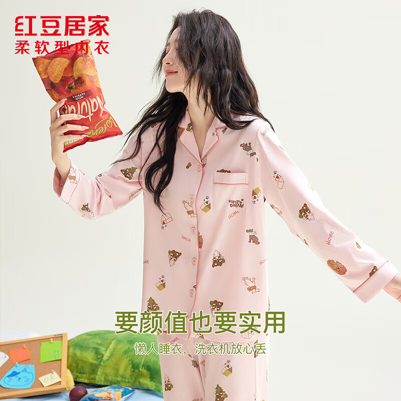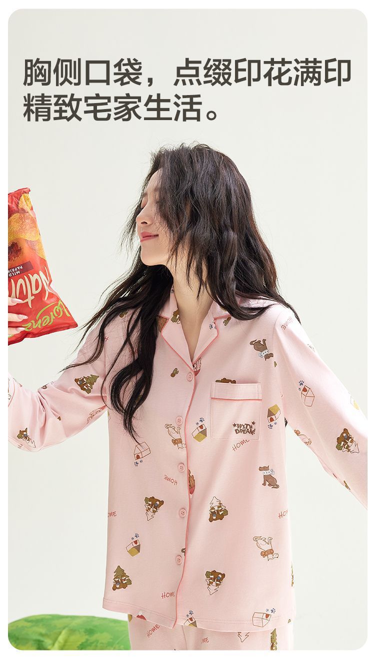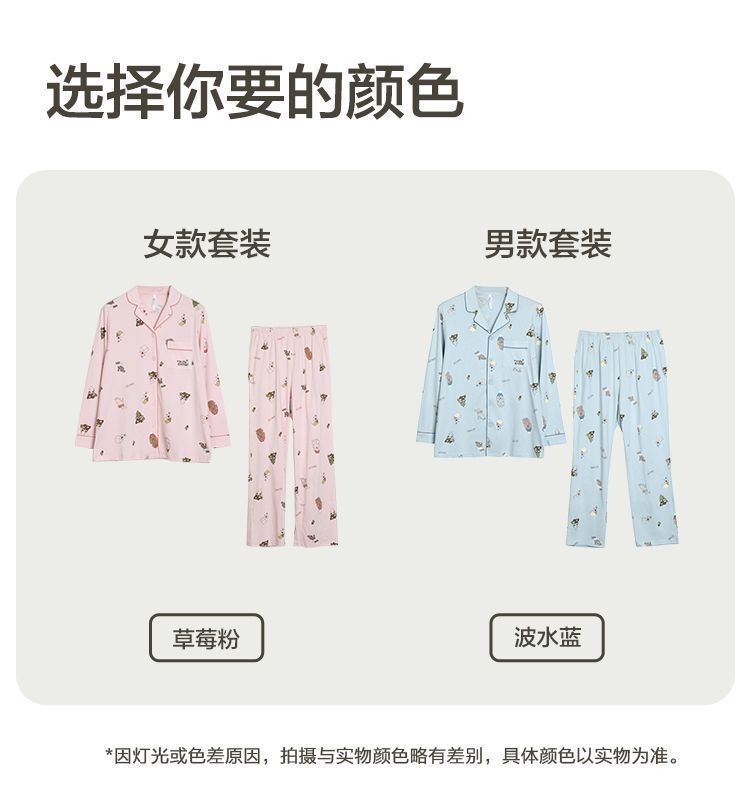 Hongdou 홈 봄 순면 프린트 커플 스타일 부드럽고 피부 친화적인 홈웨어 세트스토어 가기