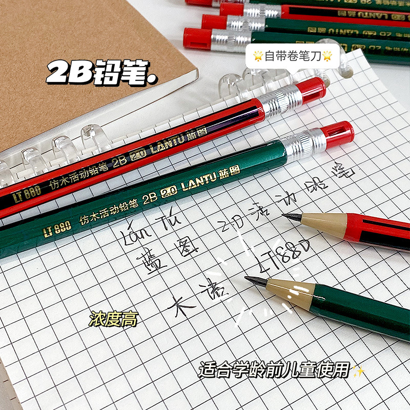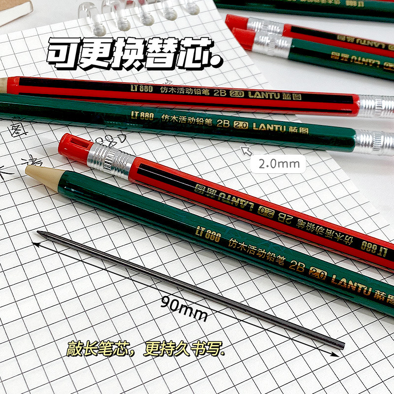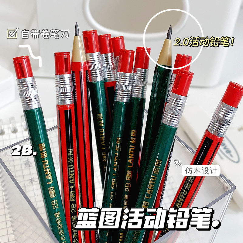프레스형 학생연필 2.0 자동연필 두꺼운심 연필없는 연속연필 학생상 2B연필