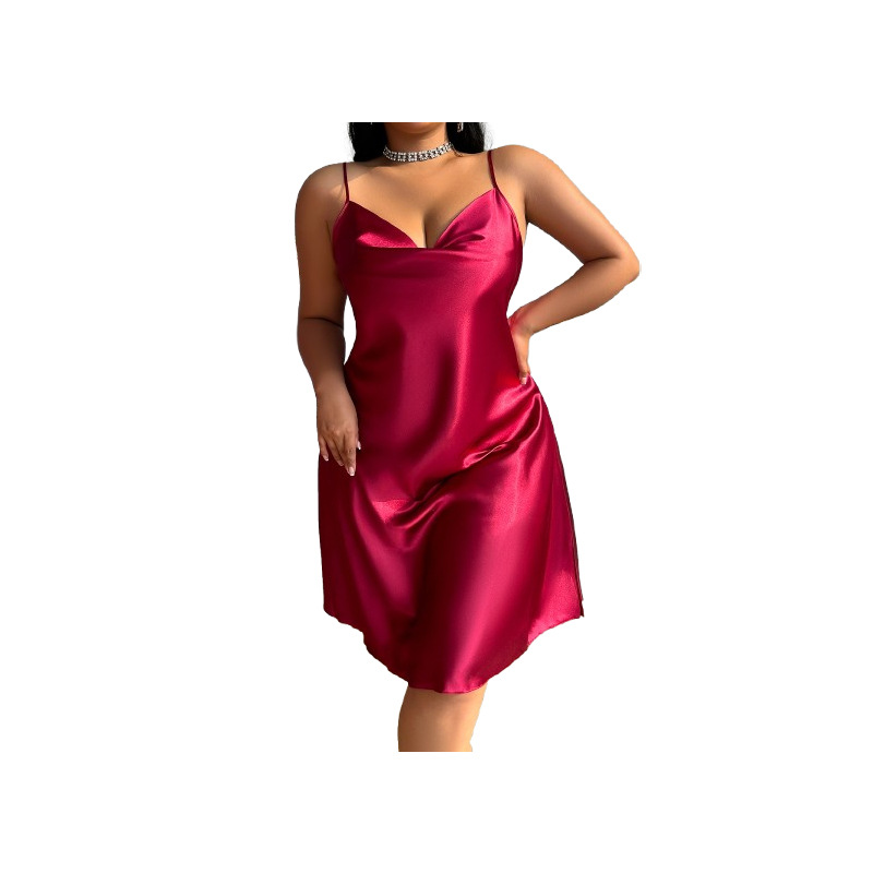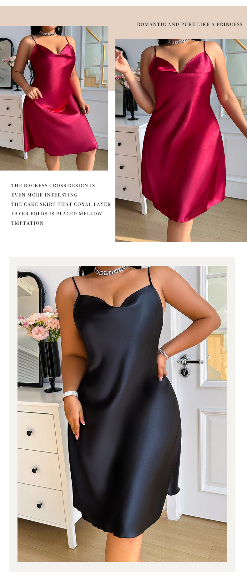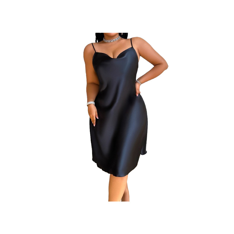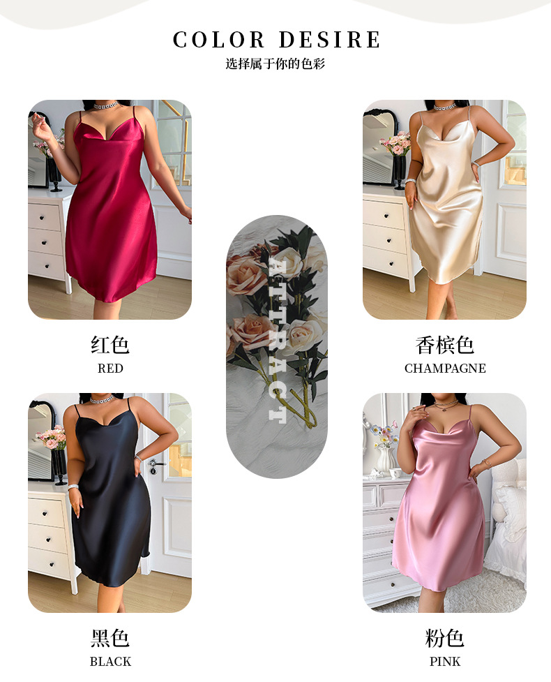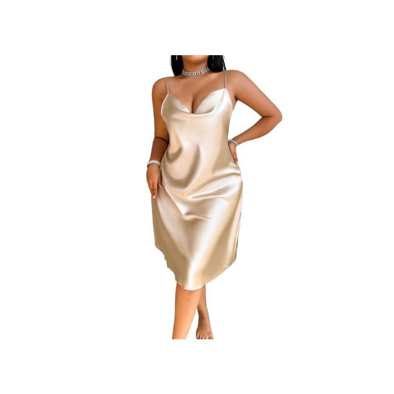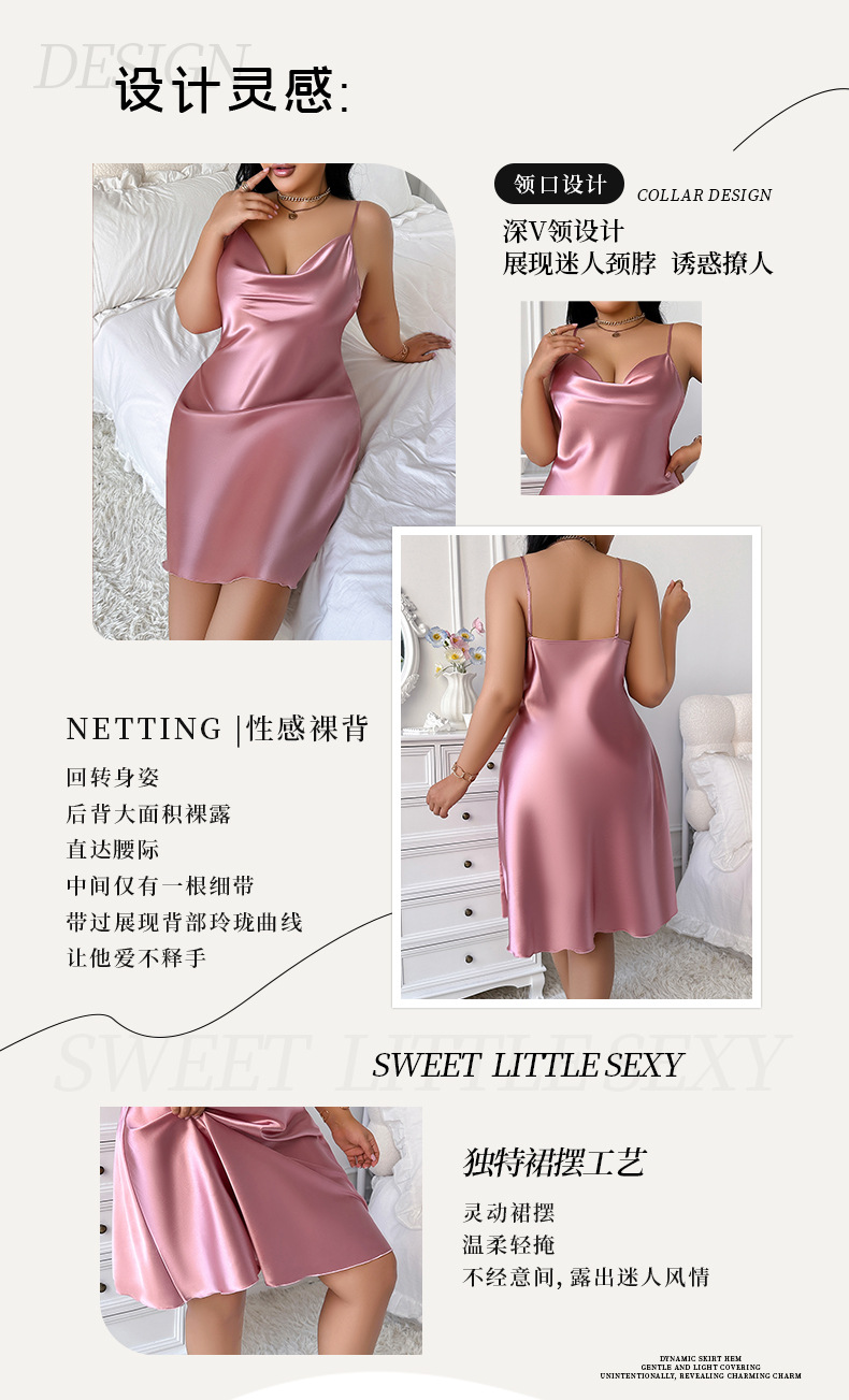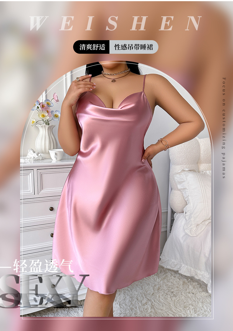 국경을 넘는 새로운 대형 여름 모조 실크 서스펜더 잠옷, 섹시한 잠옷, 고급 단색 여성 홈웨어
