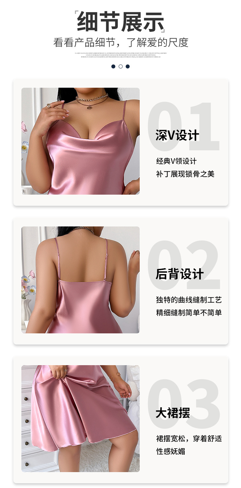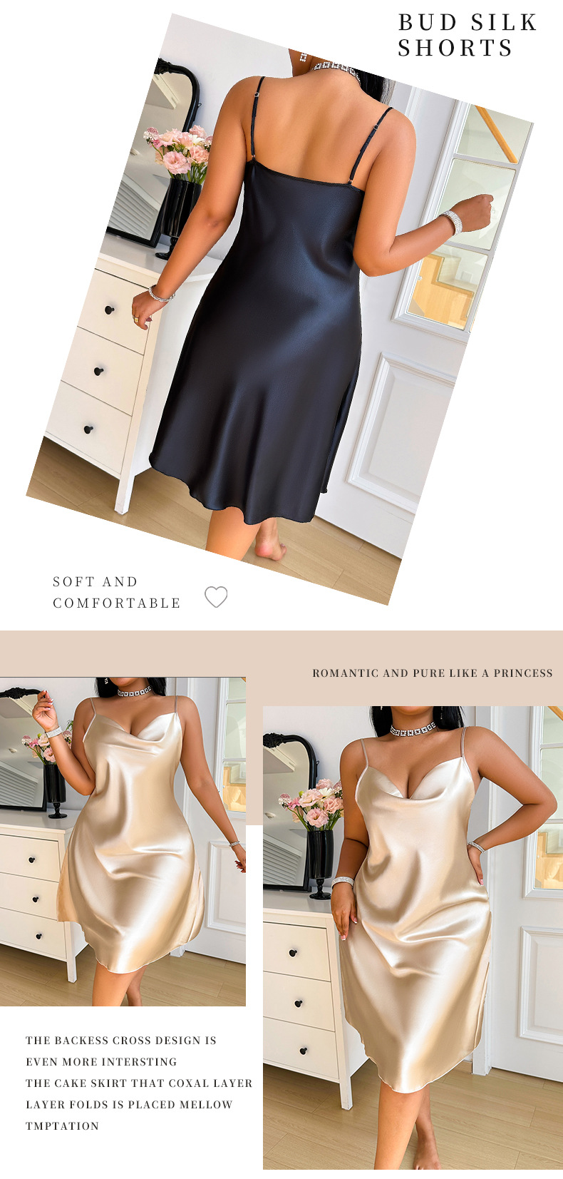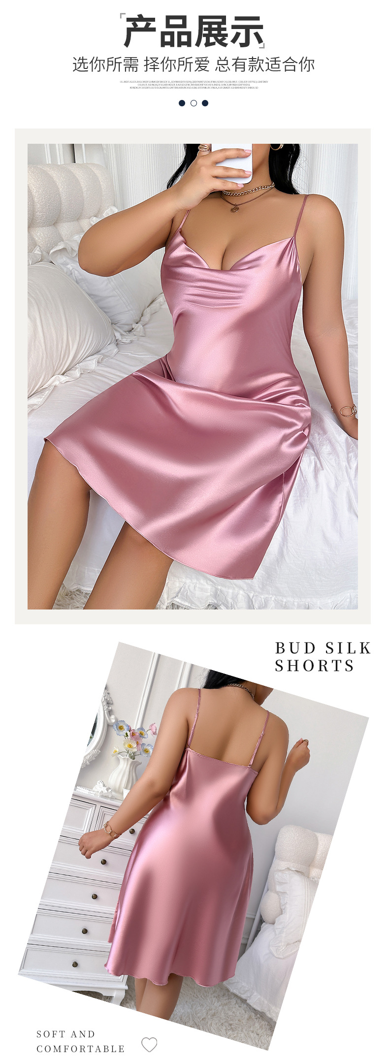 국경을 넘는 새로운 대형 여름 모조 실크 서스펜더 잠옷, 섹시한 잠옷, 고급 단색 여성 홈웨어스토어 가기