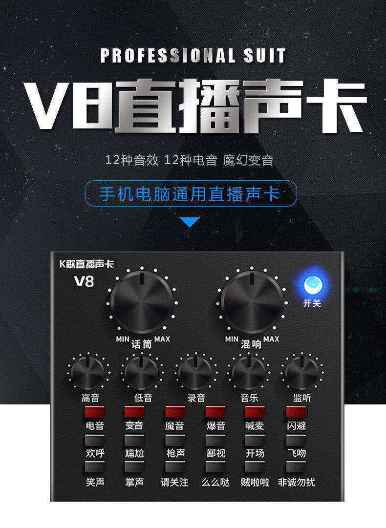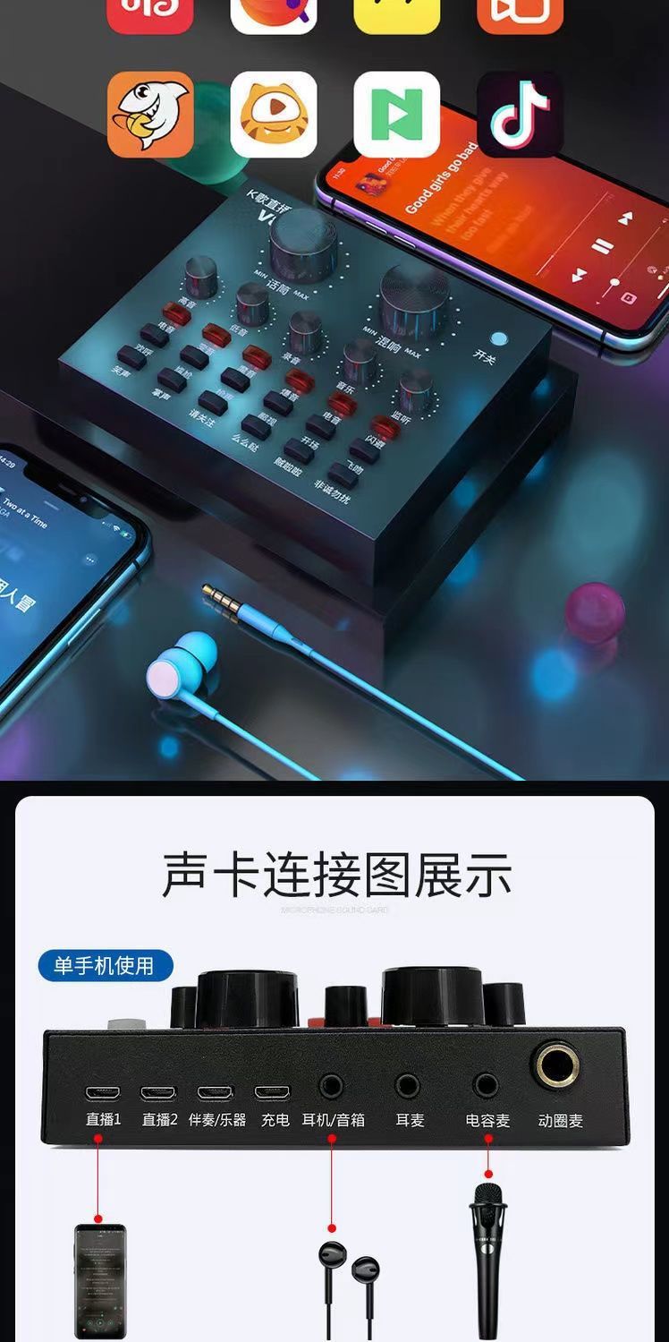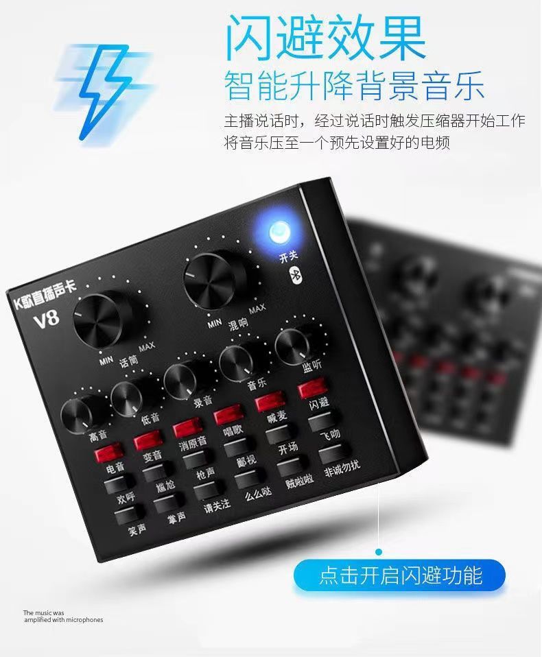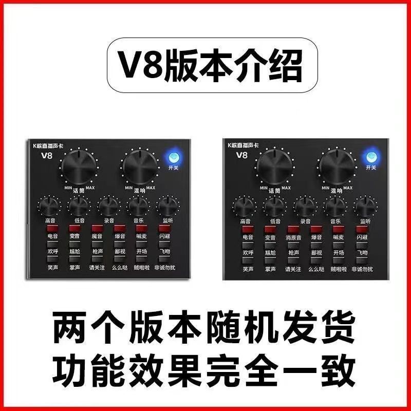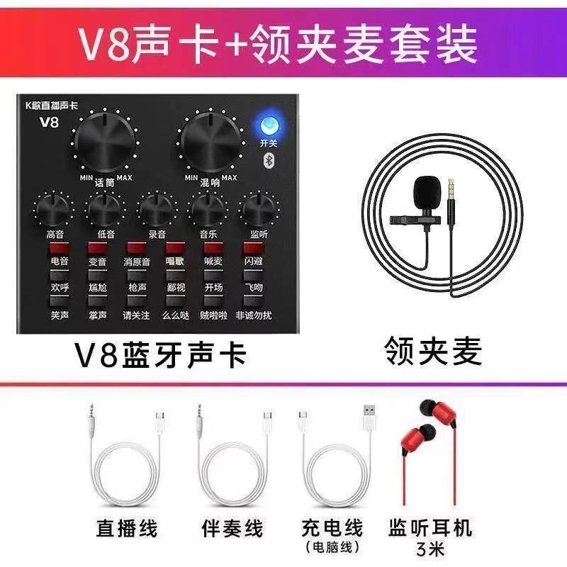 V8 사운드 카드 라이브 방송 전용 휴대 전화 컴퓨터 범용 무선 전문 노래 사운드 카드 장비 풀 세트 공장 체인