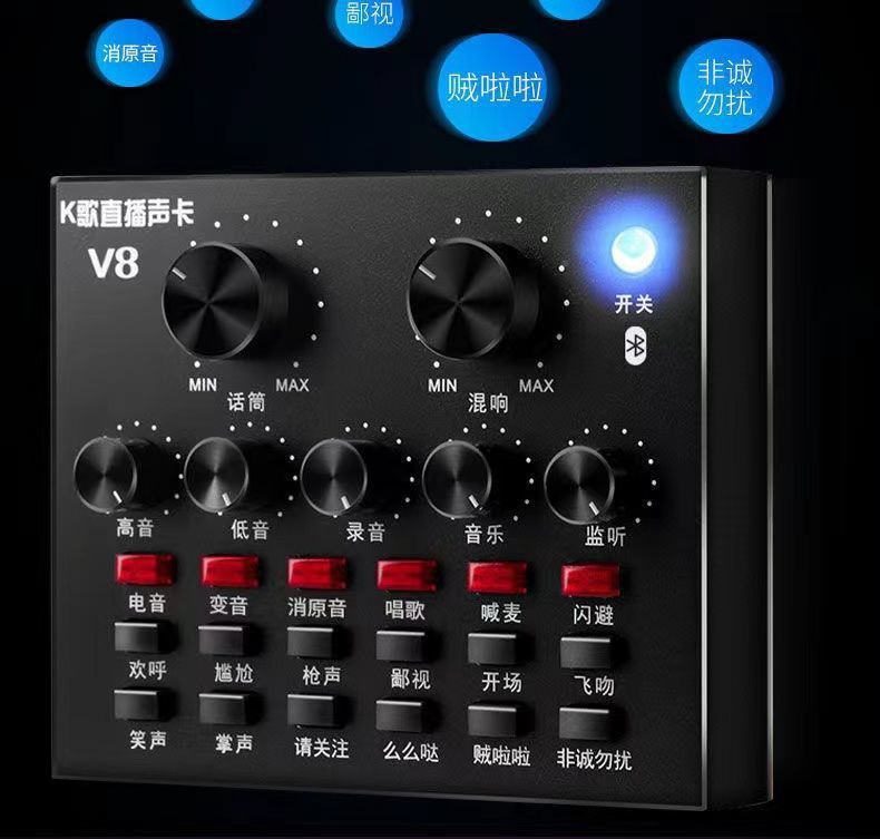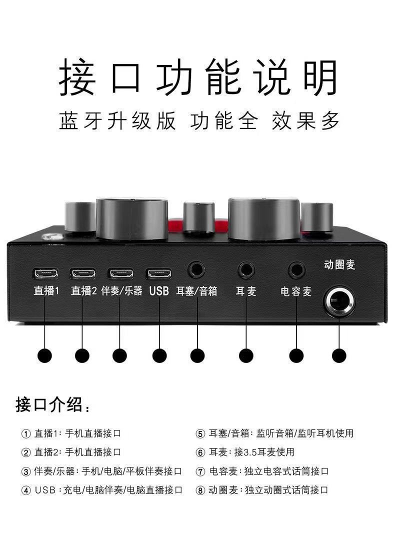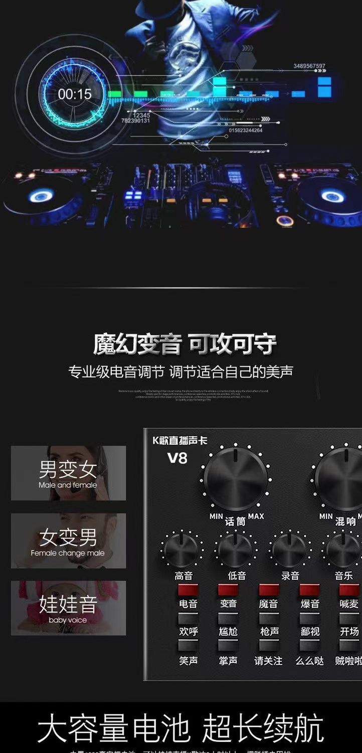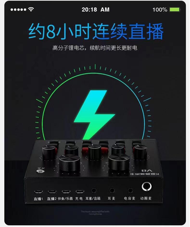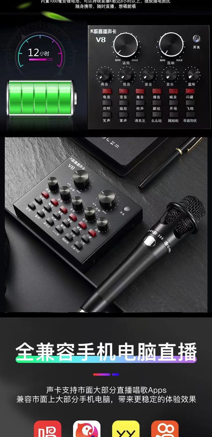 V8 사운드 카드 라이브 방송 전용 휴대 전화 컴퓨터 범용 무선 전문 노래 사운드 카드 장비 풀 세트 공장 체인
