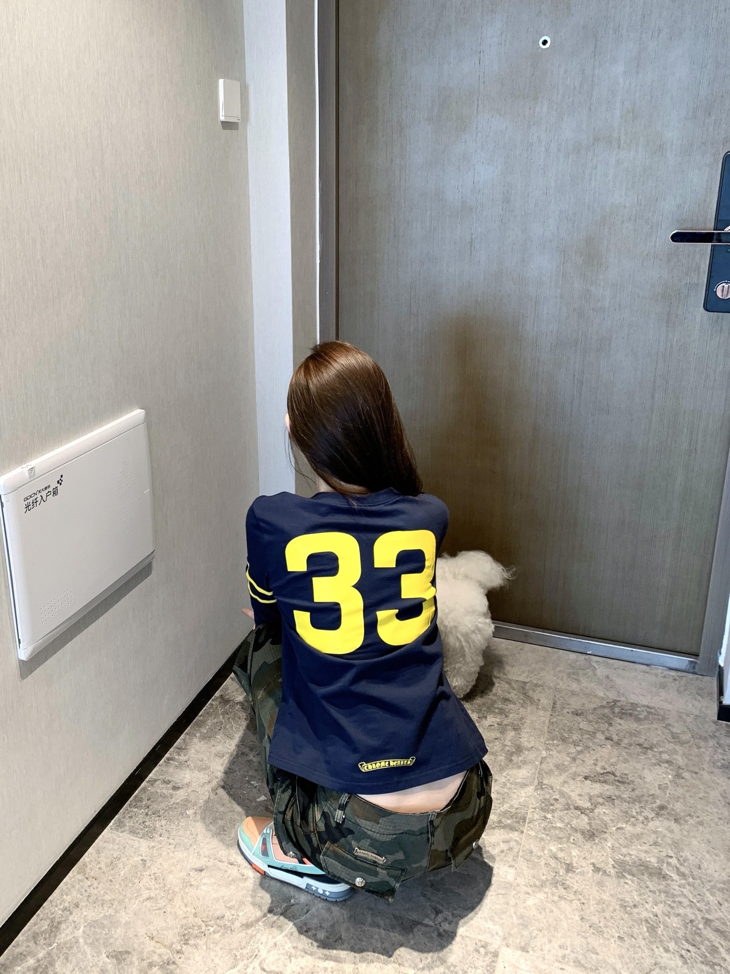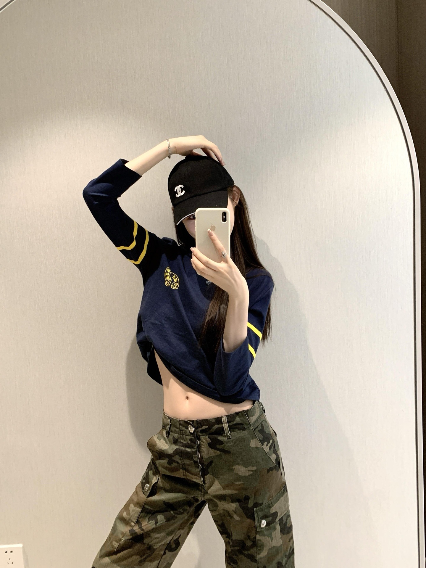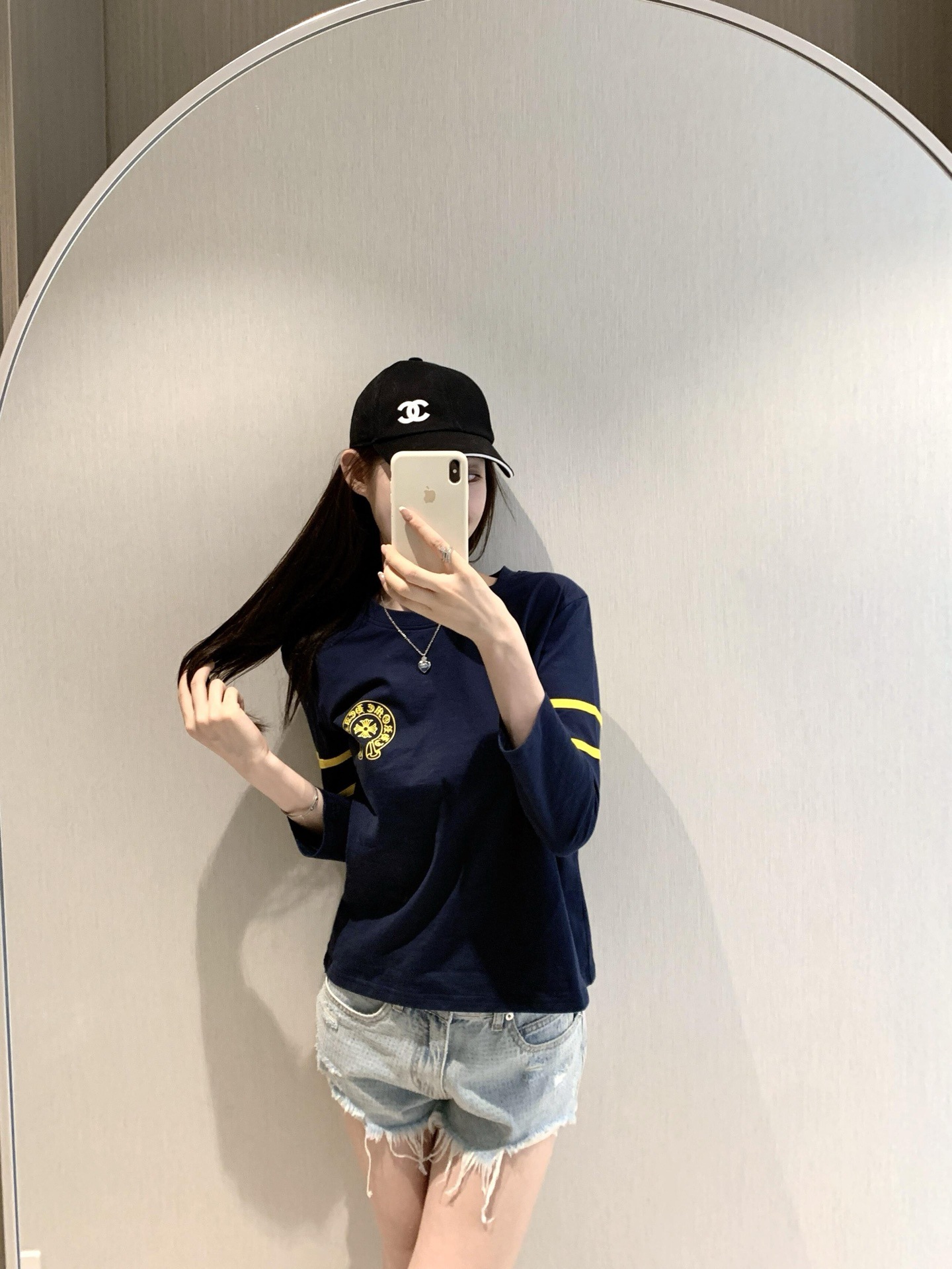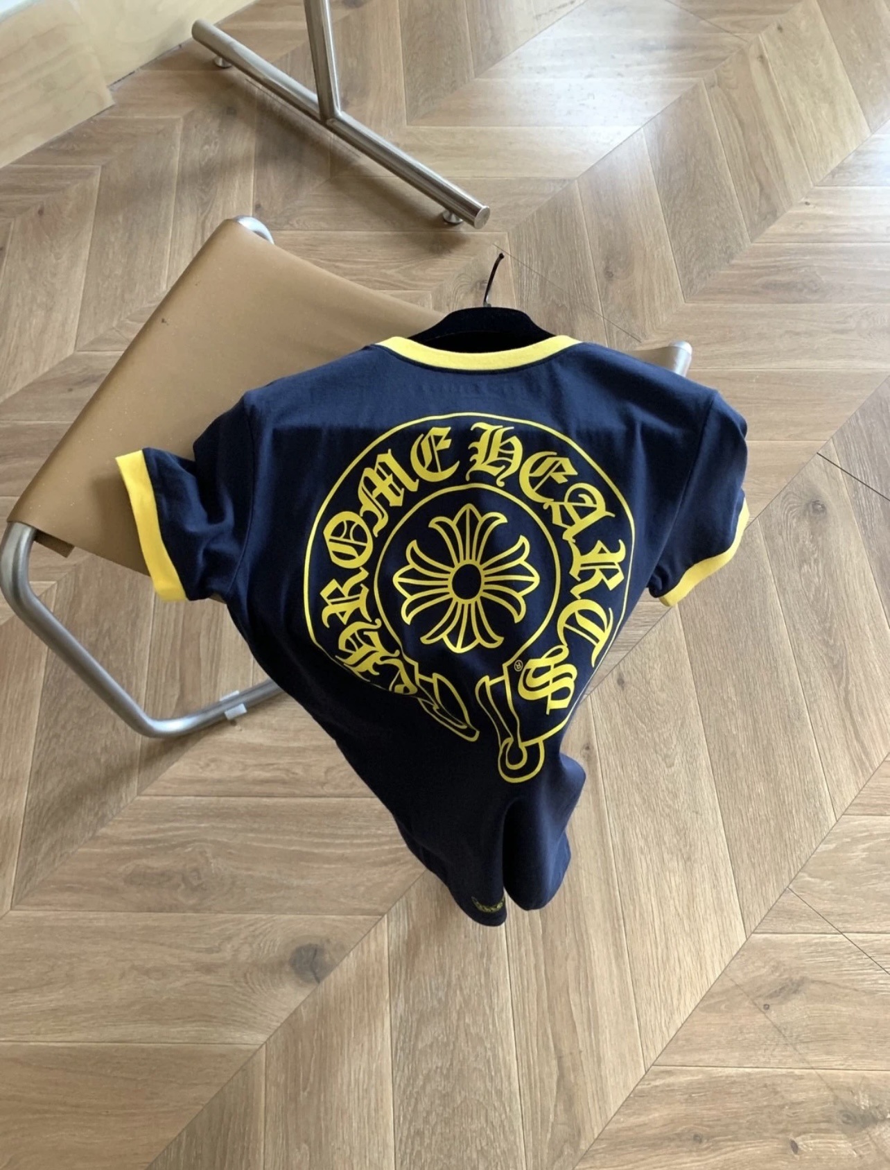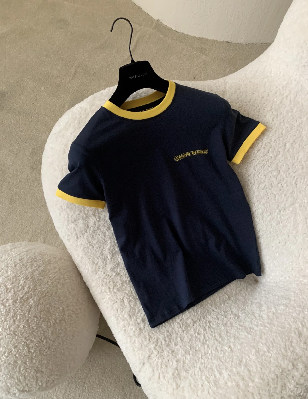 고품질 CH25 여름 새로운 틈새 디자인 트렌디 브랜드 눈길을 끄는 대비 색상 말굽 프린트 여성용 반팔 티셔츠스토어 가기