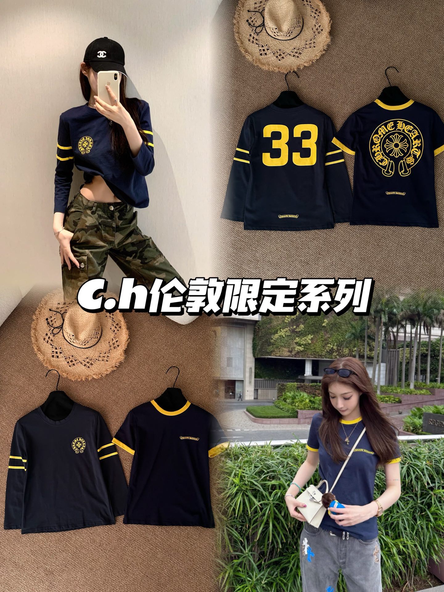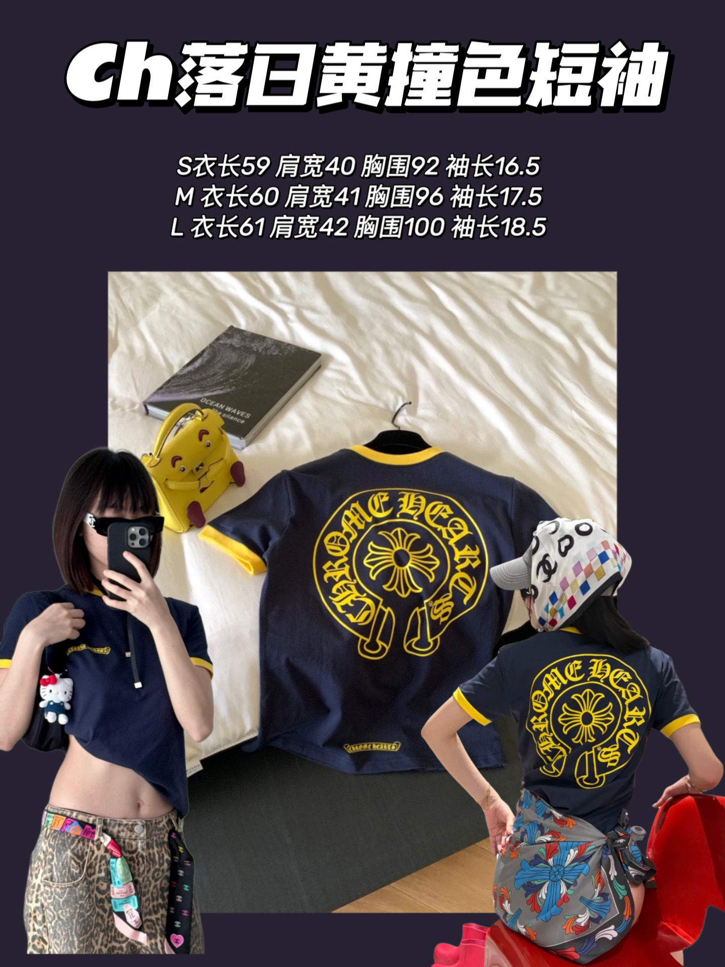 고품질 CH25 여름 새로운 틈새 디자인 트렌디 브랜드 눈길을 끄는 대비 색상 말굽 프린트 여성용 반팔 티셔츠