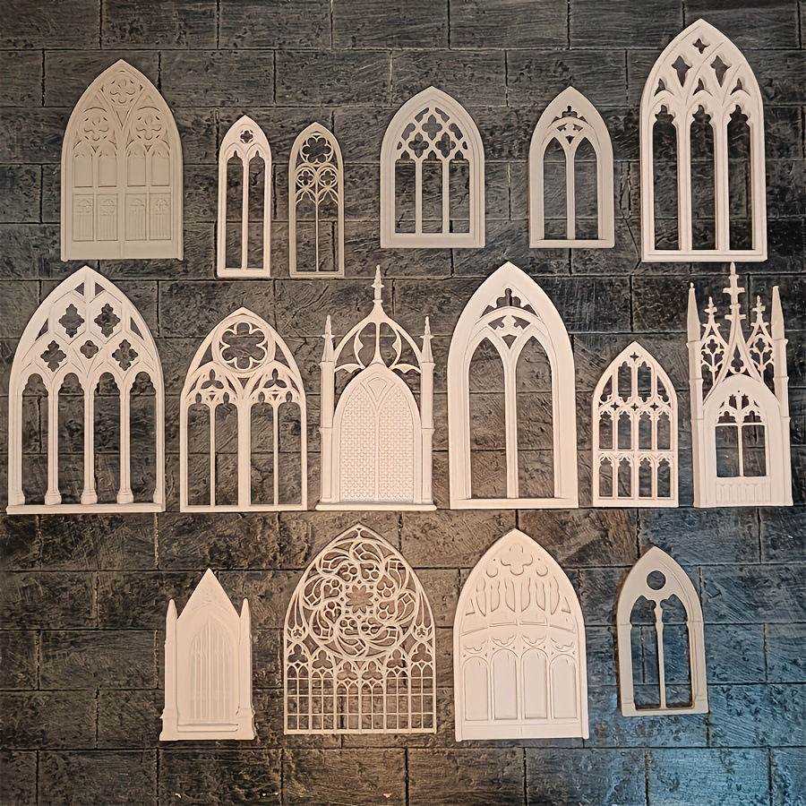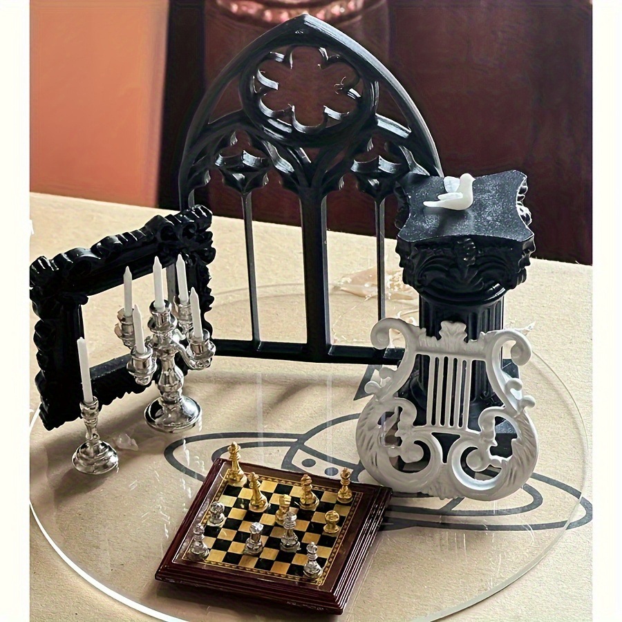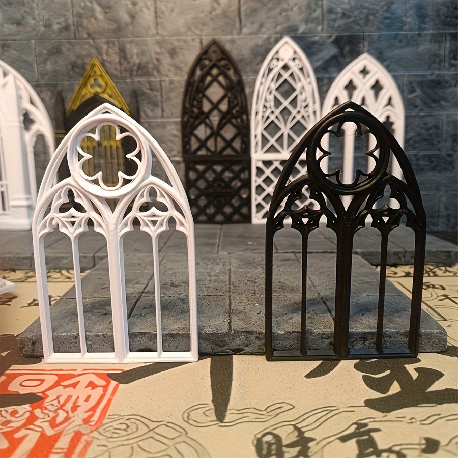 인형 집 홈 창 유럽 스타일 장식 소형 풍경 세트 고딕 모델 건물 액세서리