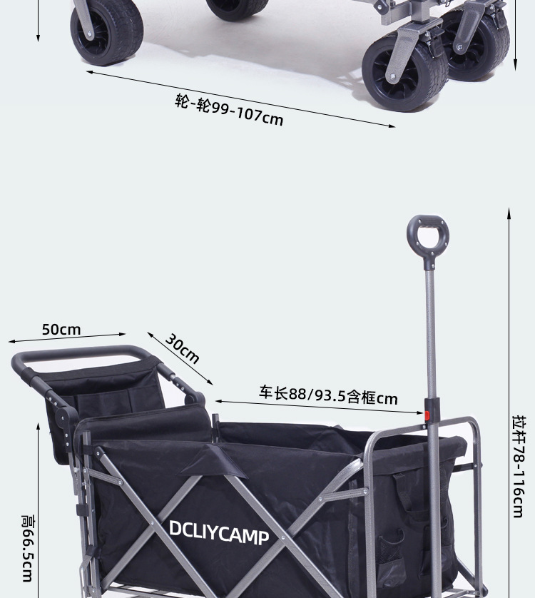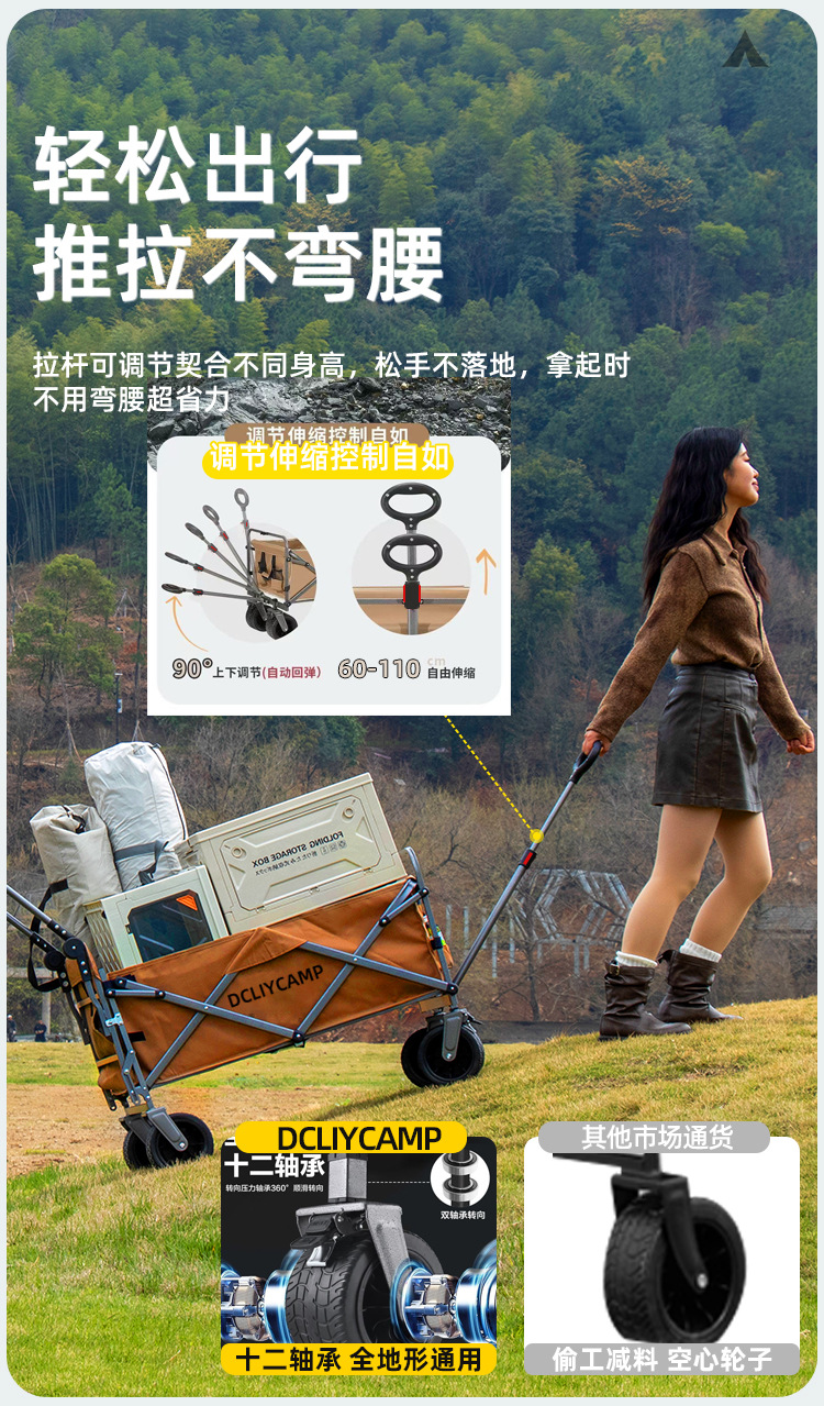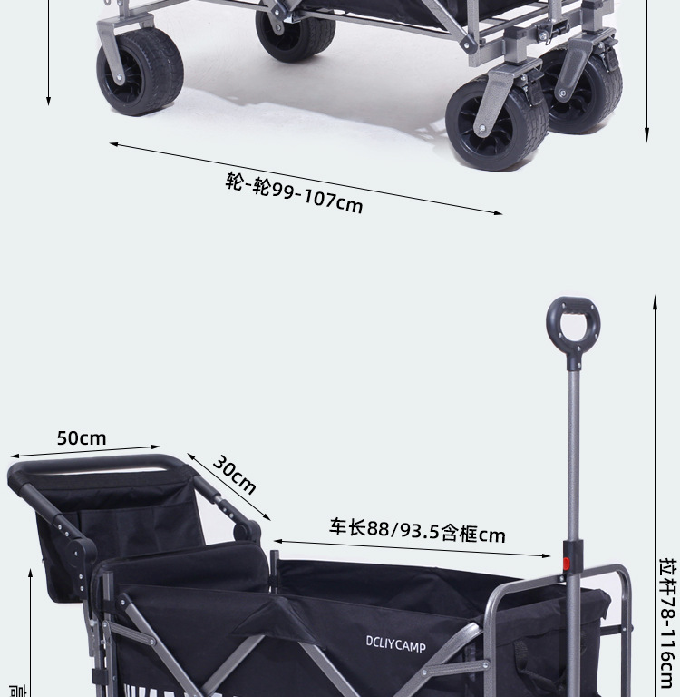 캠핑 트롤리, 푸시풀 일체형 어린이용 야외 캠핑 트롤리, 휴대용 쇼핑 접이식 캠핑 트레일러