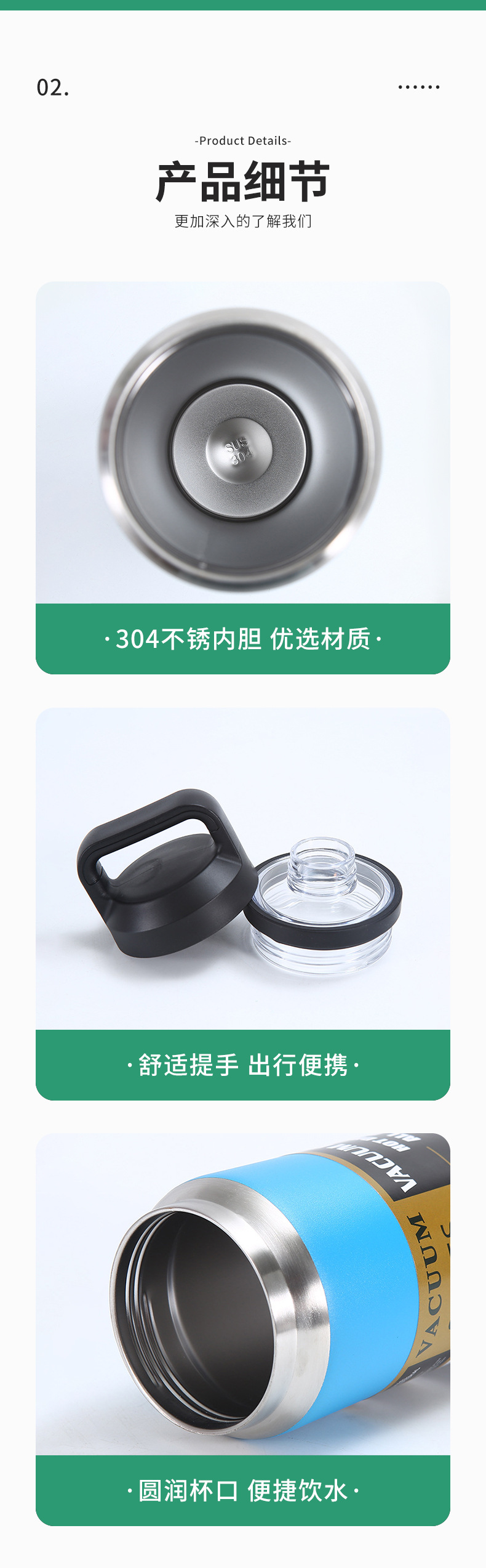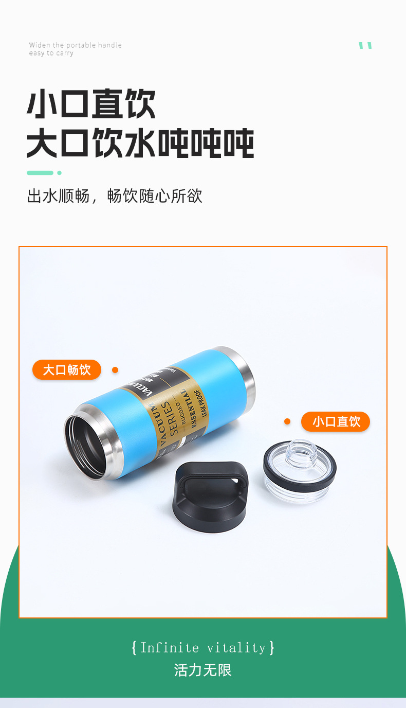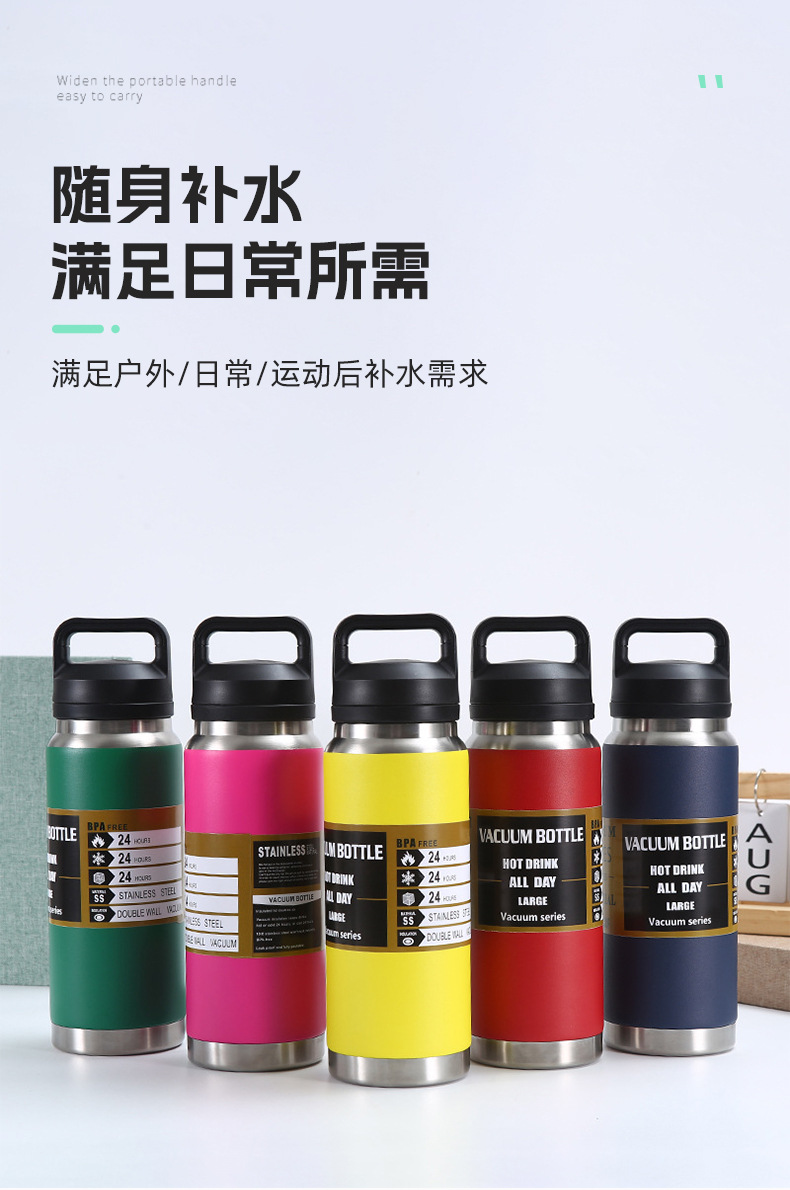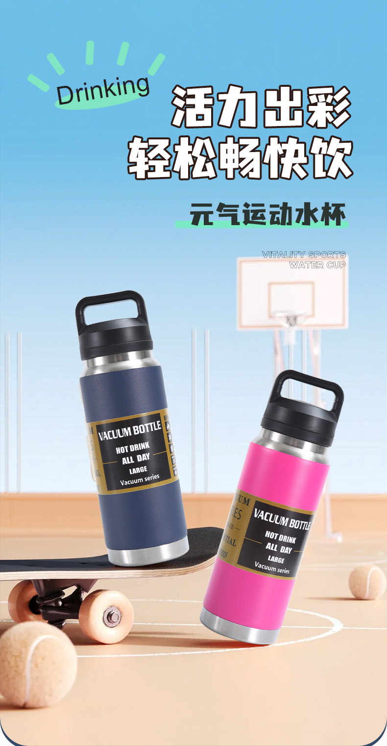 국경 간 휴대용 스포츠 물컵, 야외 스포츠 보온병 컵, 이중층 두꺼운 물병, 대용량 공간 주전자 재고 있음