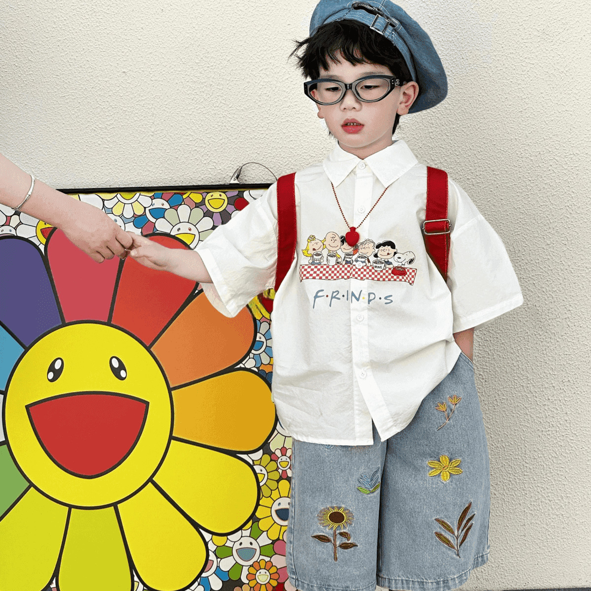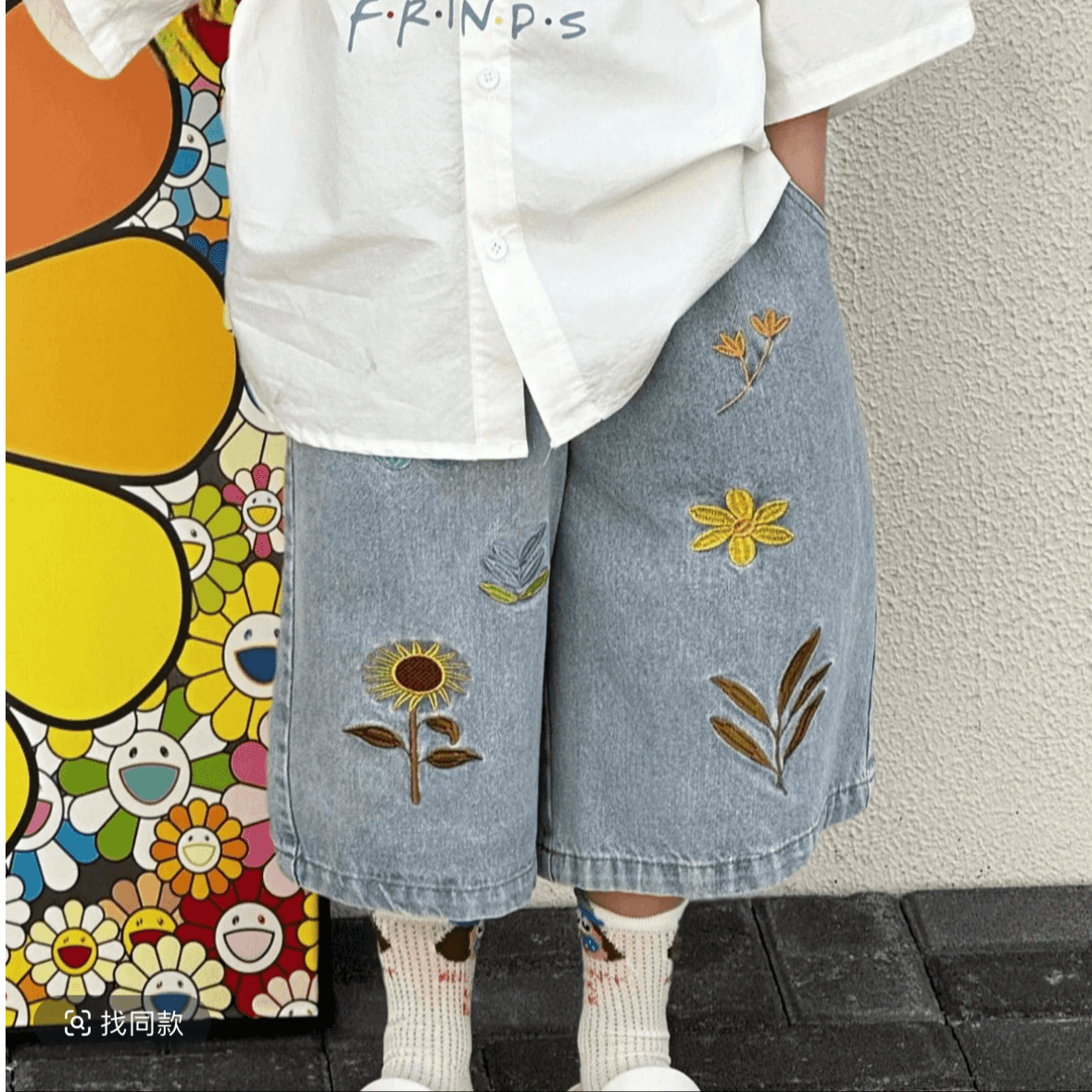 • 흰색 셔츠 + 꽃무늬 청바지