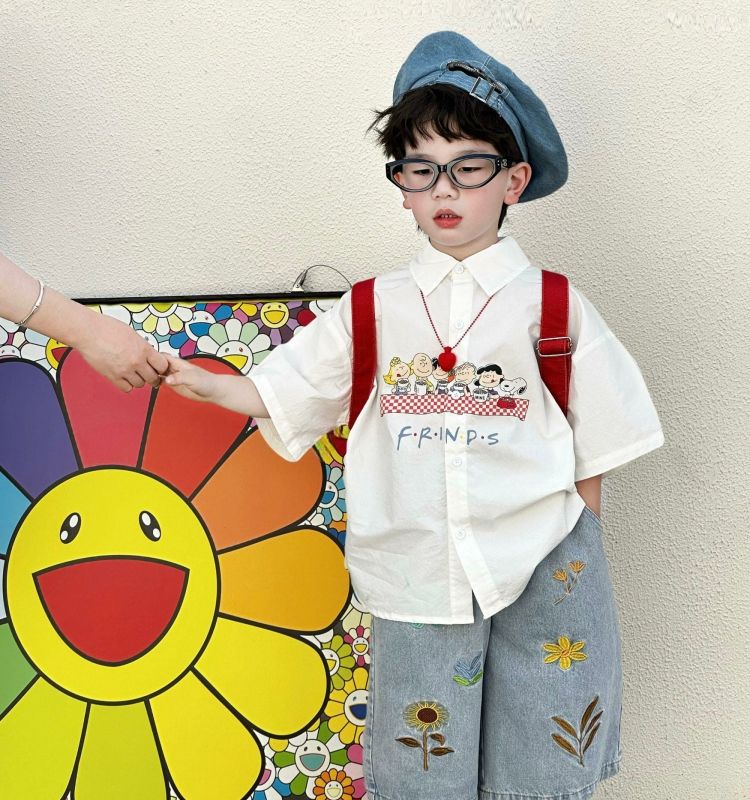 소년 셔츠 아동 여름 착용 2025 새로운 흰색 옷깃 반팔 셔츠 아기 소년 캐주얼 유행상의스토어 가기
