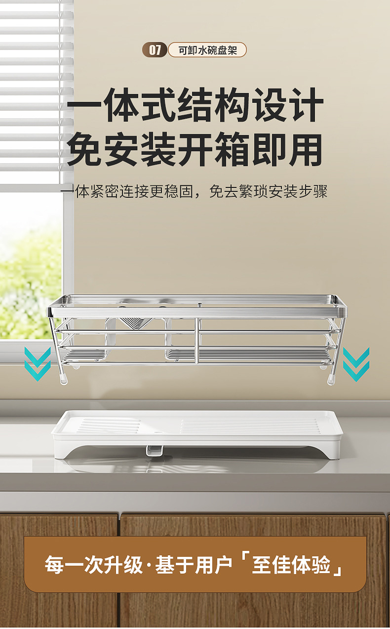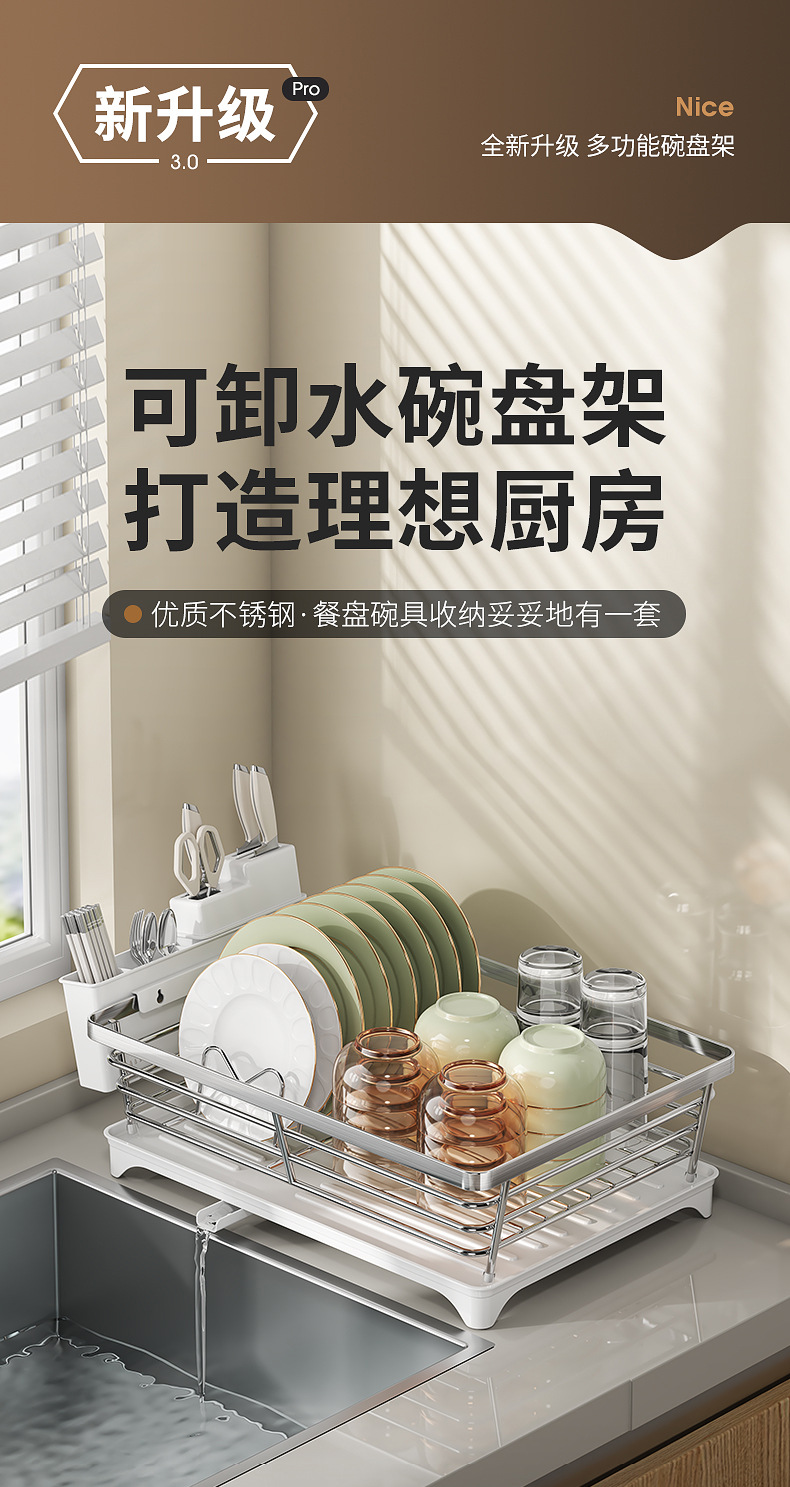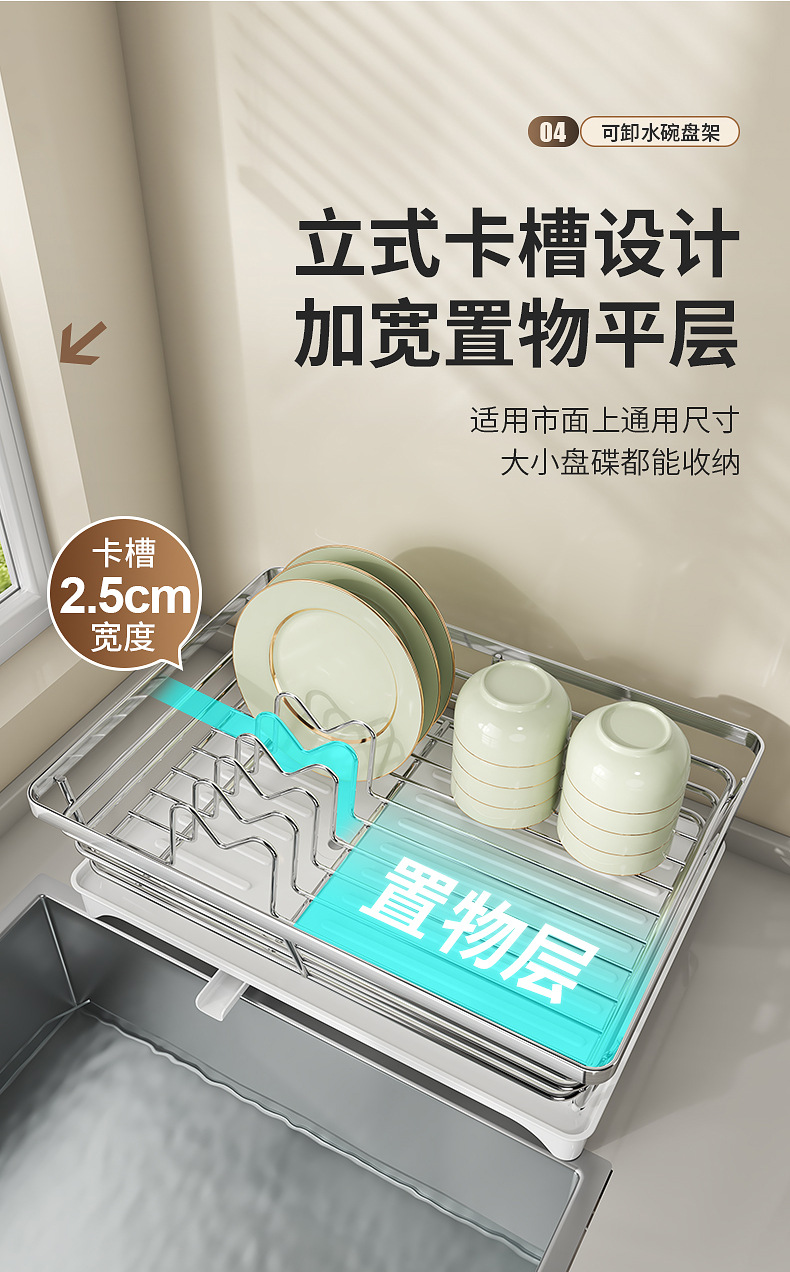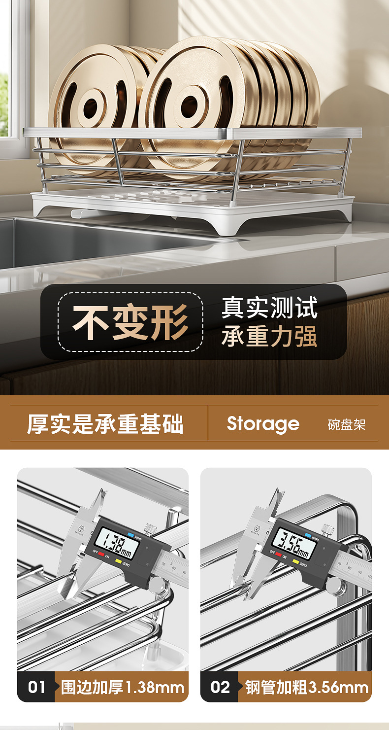 一体加固304不锈钢碗架双层沥水碗碟架厨房置物架收纳晾放碗盘架