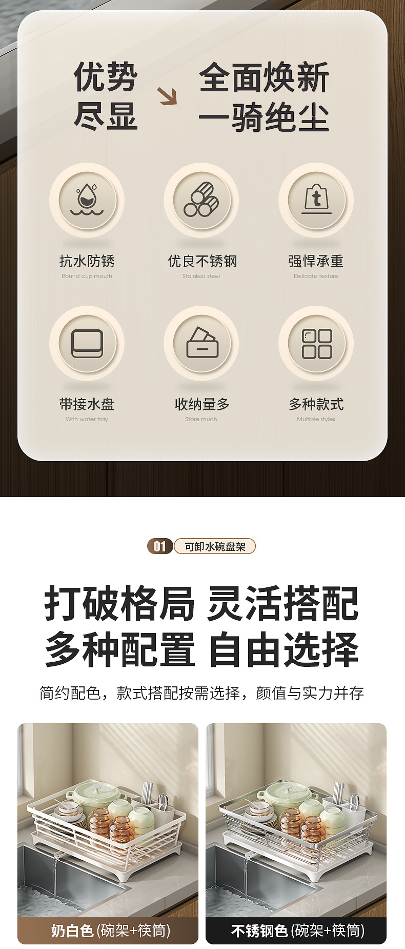 厨房不锈钢碗架沥水架晾放碗筷碗碟盘子双层碗柜收纳盒置物架