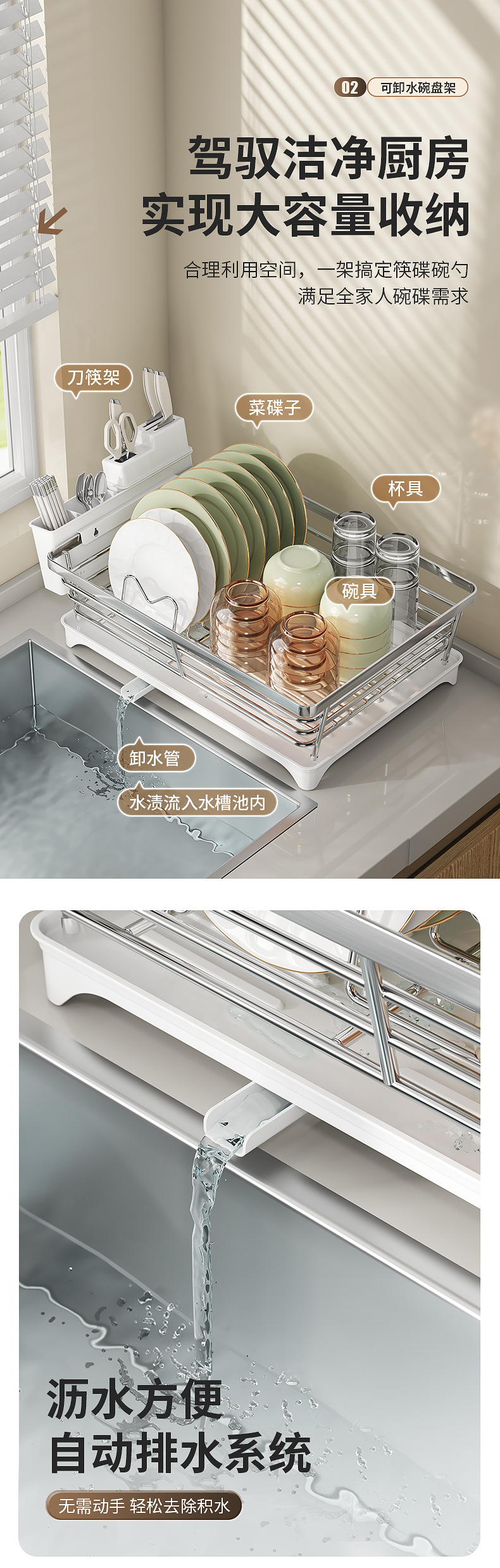 • BJ12+ 배수 그릇걸이(대형, 완비, 유백색)