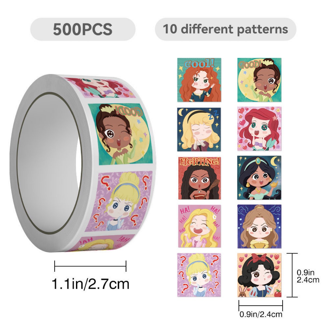 공주 이모티콘 스티커 500개, 만화 귀여운 고가치 주변 장식 테이프, 씰링 스티커, 접착식스토어 가기
