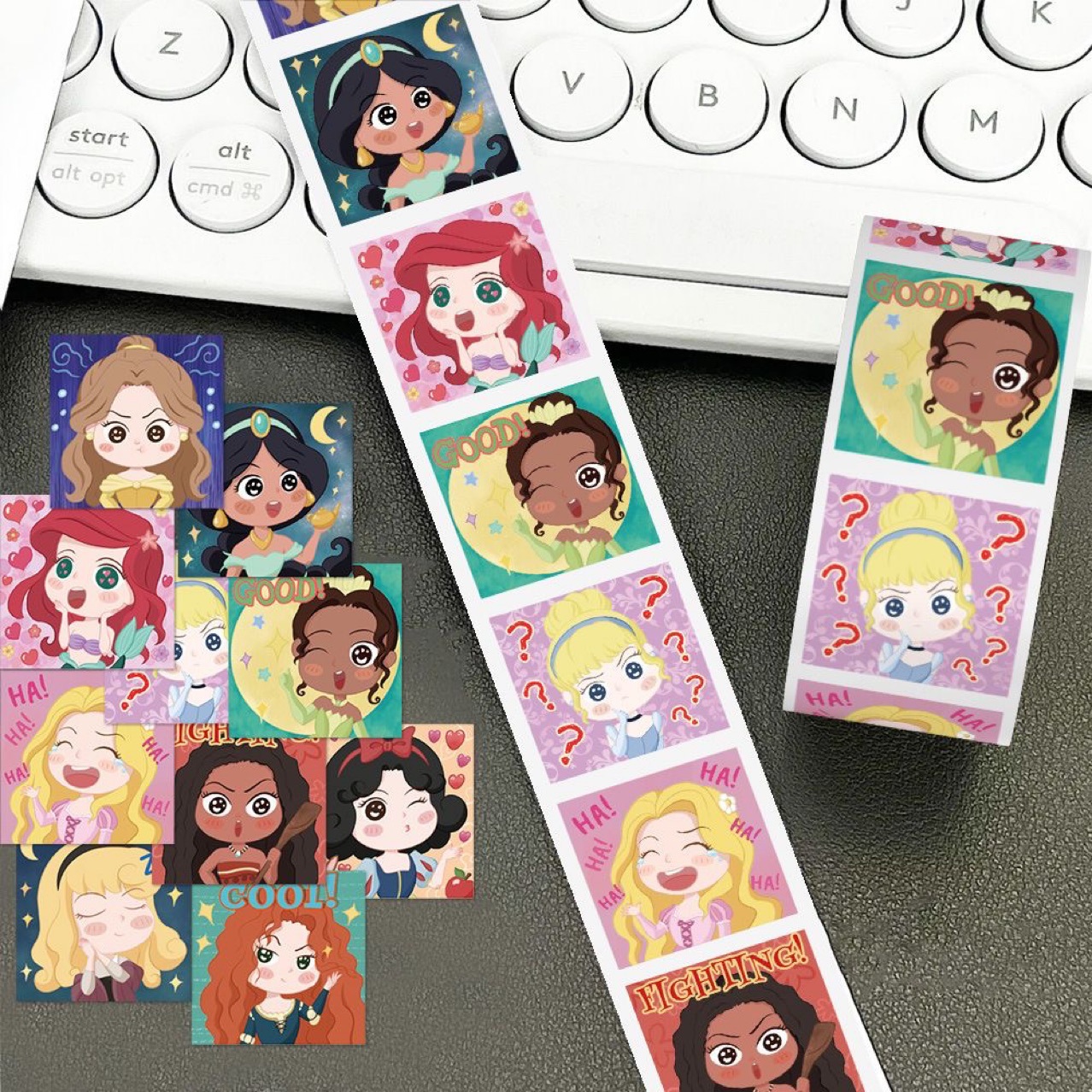 공주 이모티콘 스티커 500개, 만화 귀여운 고가치 주변 장식 테이프, 씰링 스티커, 접착식