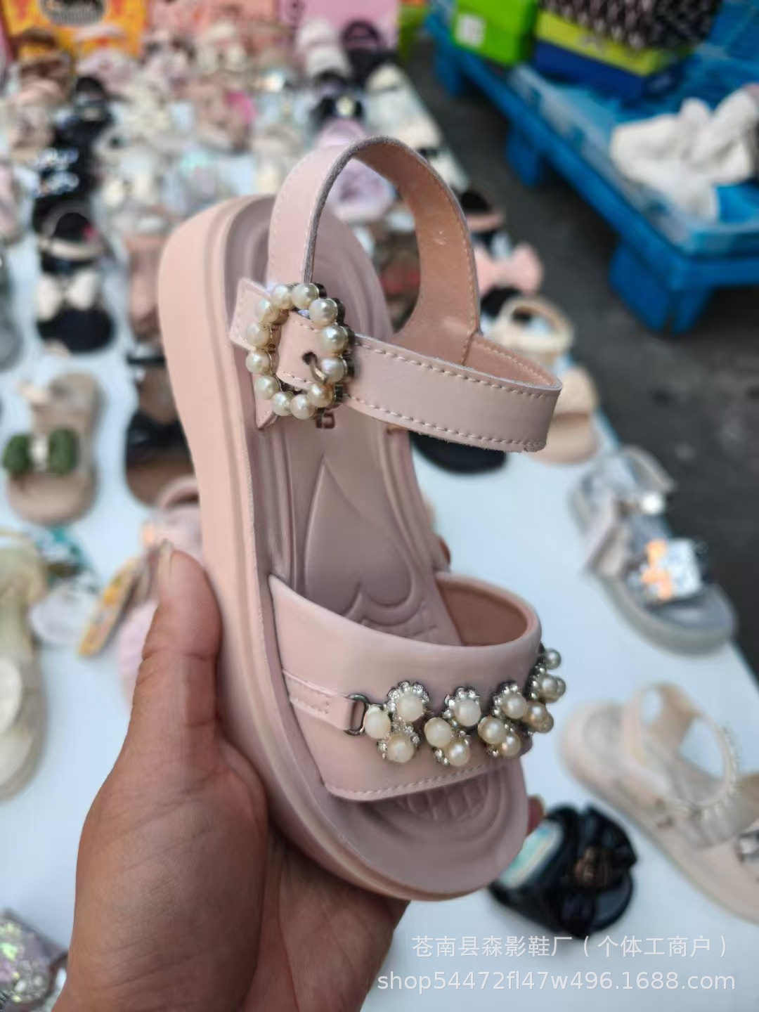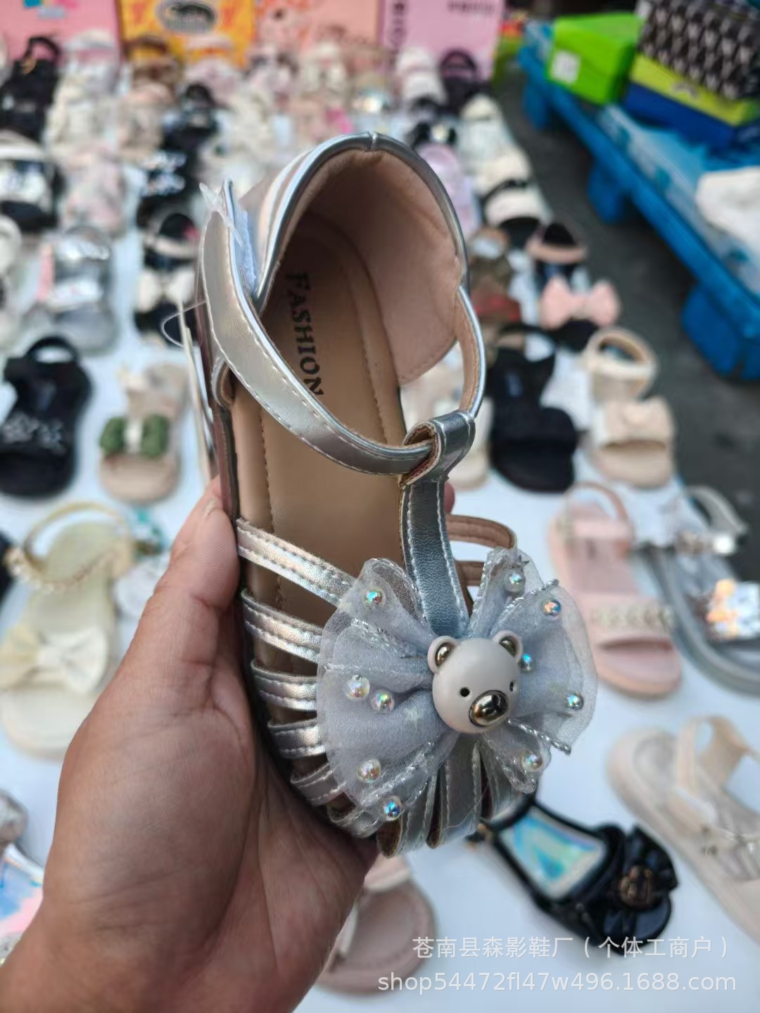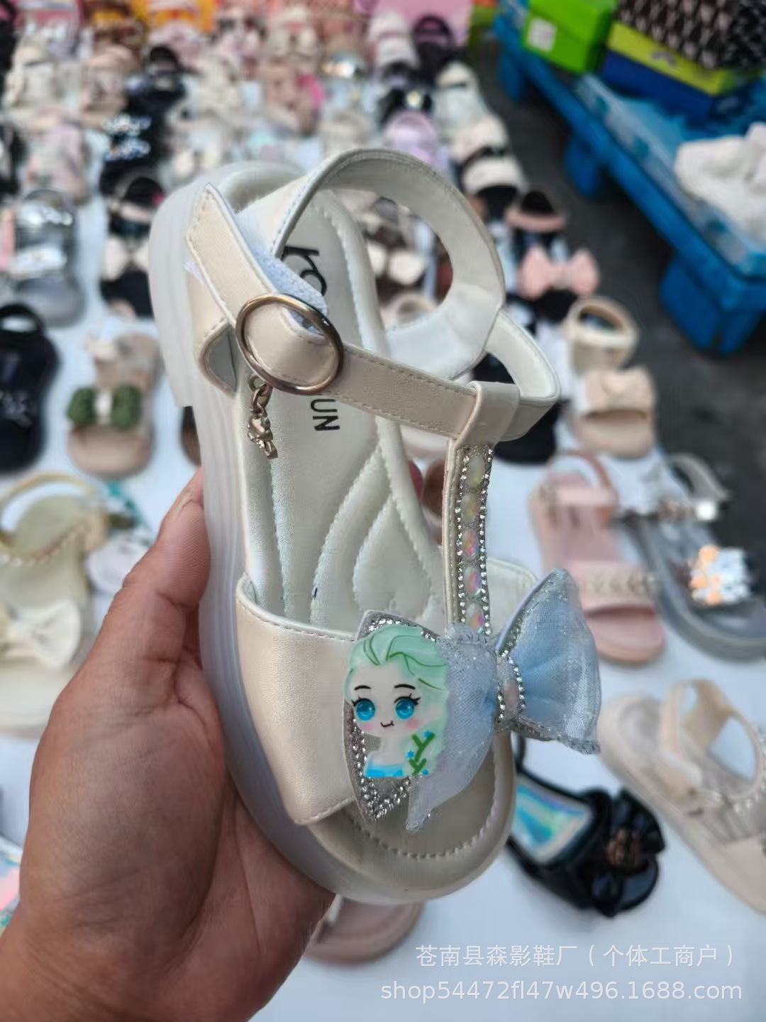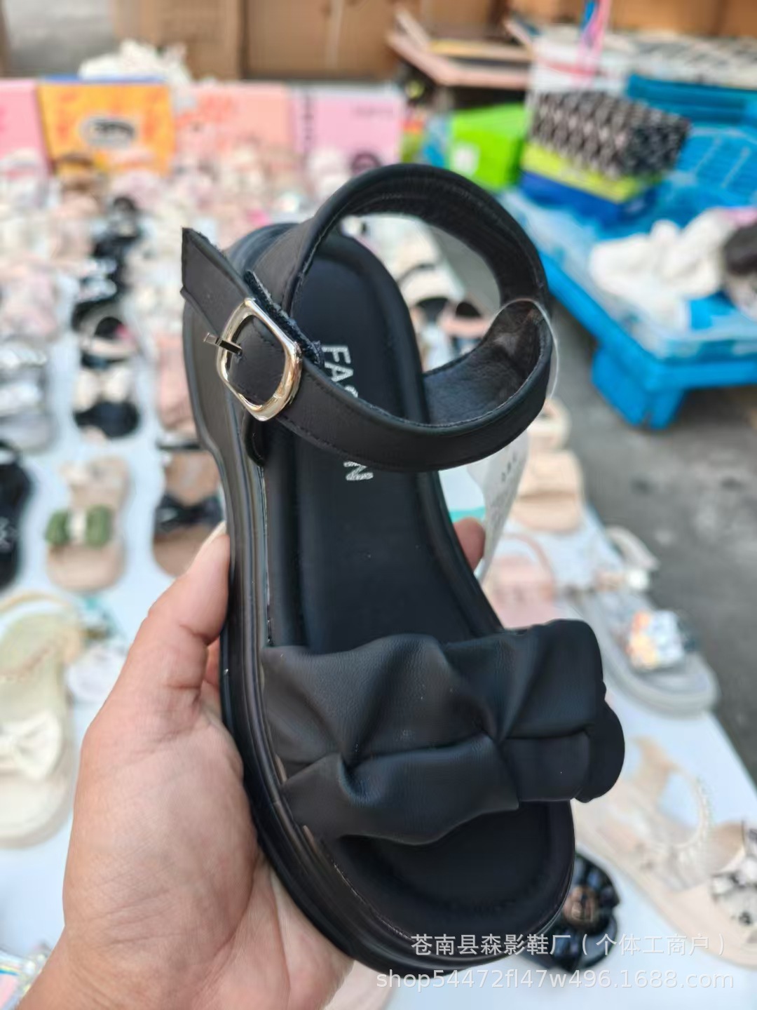 어린이 샌들 최종 공급 공주 신발 여름 매점 물리적 중대형 어린이 소녀 학생 매듭 공연 신발 도매