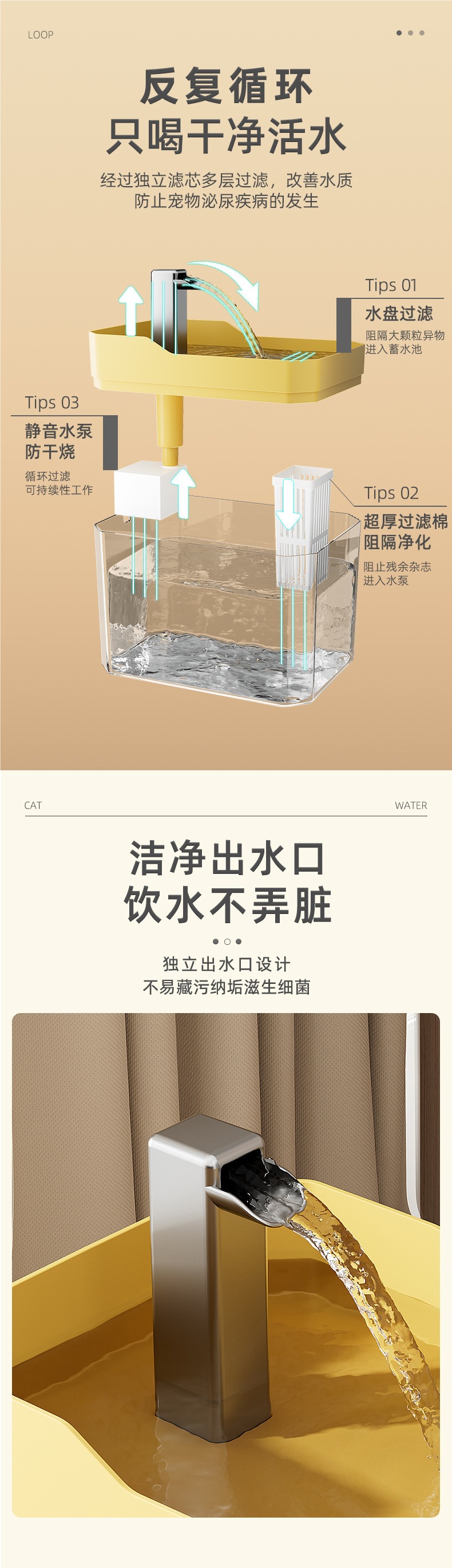 애완동물 급수기, 흐르는 물, 무소음 고양이 급수기, 자동 애완동물 강아지 급수기, 물 공급 순환