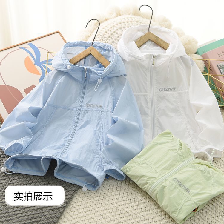 어린이 자외선 차단 의류, 여름 중대형 어린이용 얇은 통기성 속건성 후드 탑, 소년 소녀용 캐주얼 모기 방지 재킷, 트렌디스토어 가기
