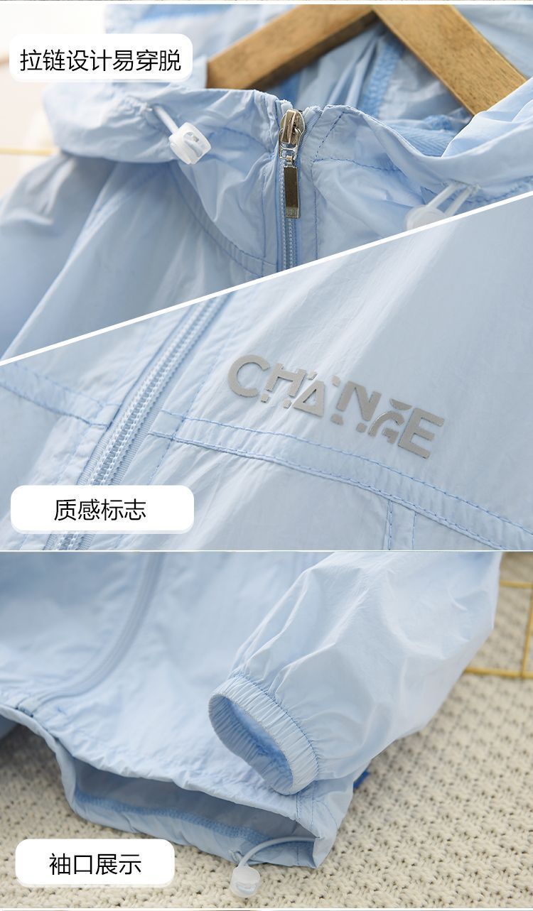 어린이 자외선 차단 의류, 여름 중대형 어린이용 얇은 통기성 속건성 후드 탑, 소년 소녀용 캐주얼 모기 방지 재킷, 트렌디