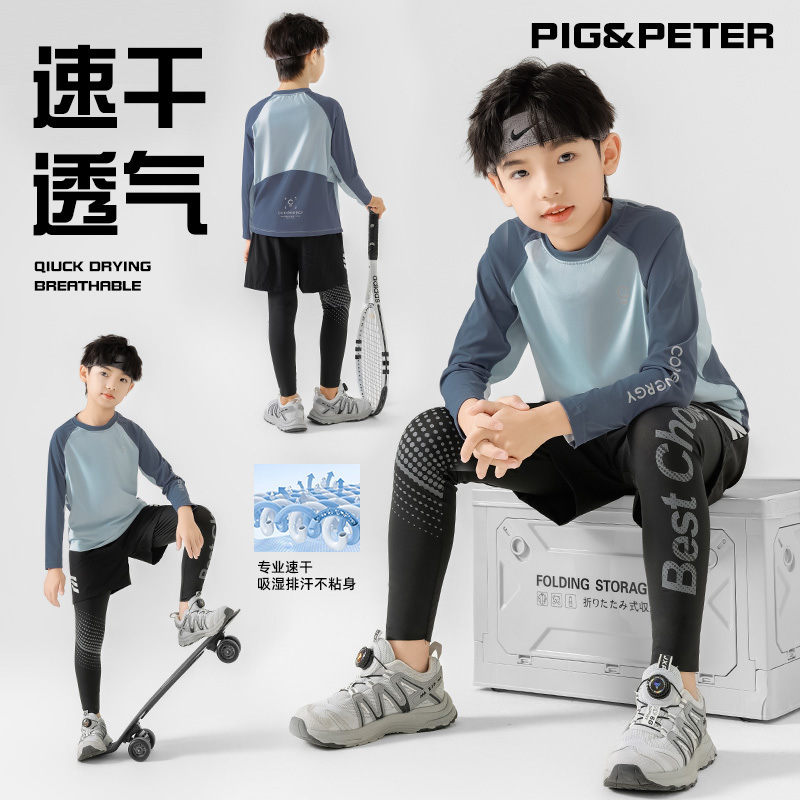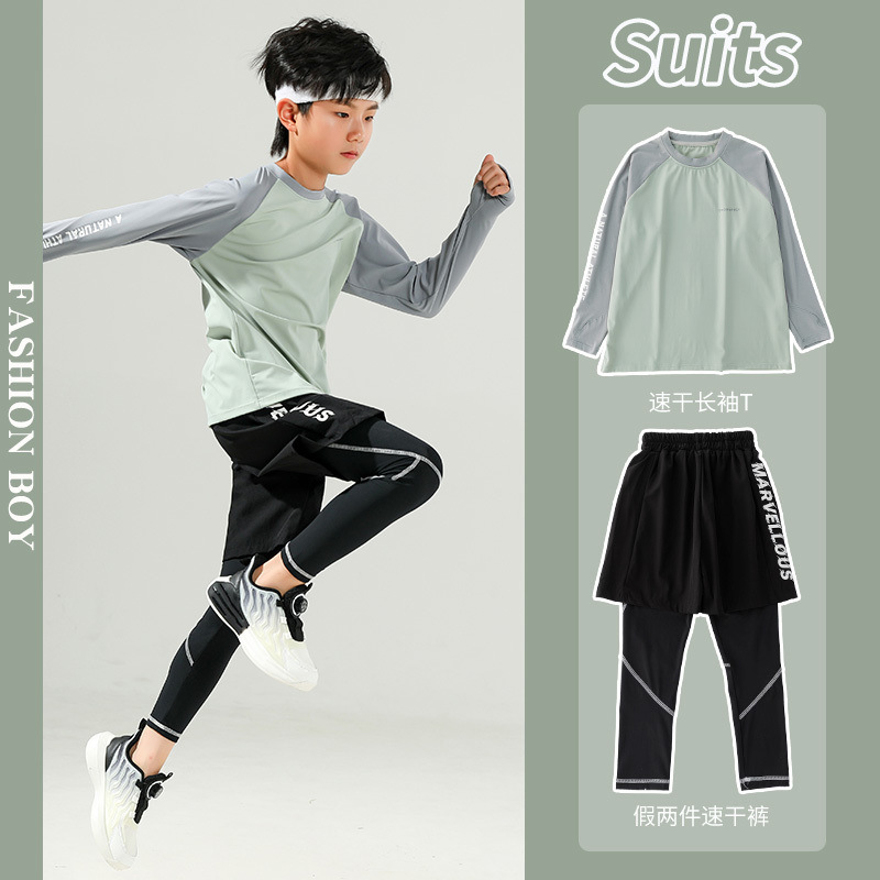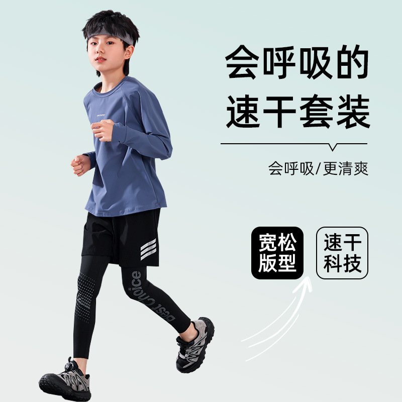 아동 운동복, 남아 체력단련복, 속건복, 대형 아동용 런닝 배드민턴 농구복, 사이클링복스토어 가기