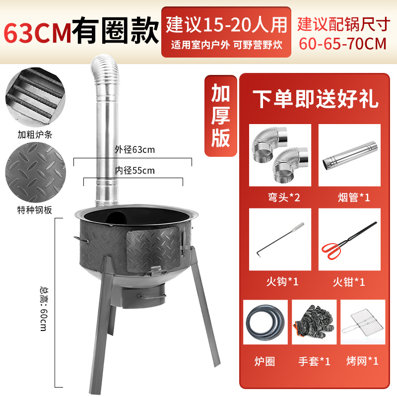 • 두꺼운 63CM 원형 모델 + 60CM 이중 귀 냄비 + [스토브 선물 팩]